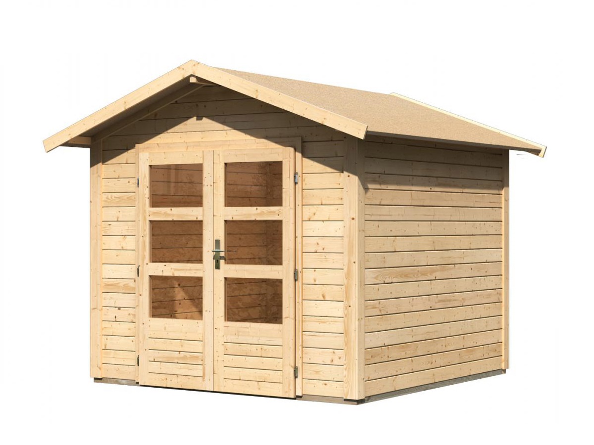 Dřevěný domek s kvalitnější silnější stěnou. Tento model má sedlovou střechu a dvoukřídlé dveře na pantech s oknem v každém křídle. Stavebním materiálem domku jsou profily síly 28 mm perfektně vyfrézované ze severského smrku. Dodáváme jako stavebnici v rozloženém stavu, kde stěny tvoří jednotlivé dřevěné profily, které pouze sesadíte k sobě a sešroubujete, střechu tvoří celistvá deska. To garantuje extrémně jednoduchou montáž, kterou zvládne každý český kutil.