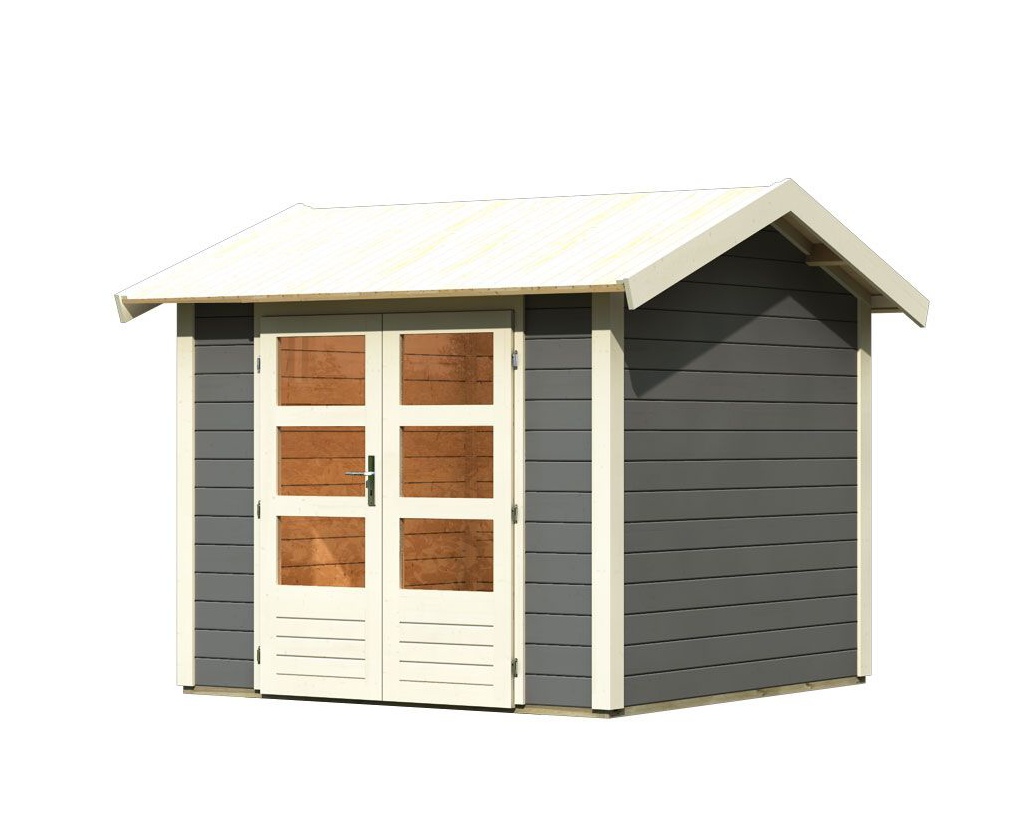 Tento model domku dodáváme v profesionálním nátěru KARIBU (odstín terragrau RAL 0604005):