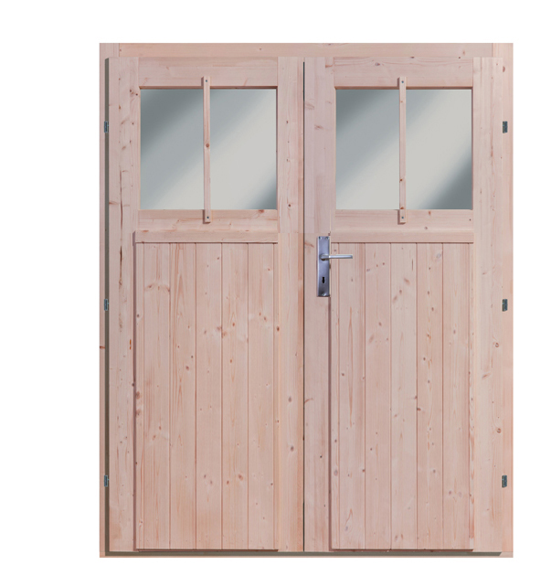 - jedny dvoukřídlé dveře š 162 x v 177 cm s oknem (prosklení z plexiskla)