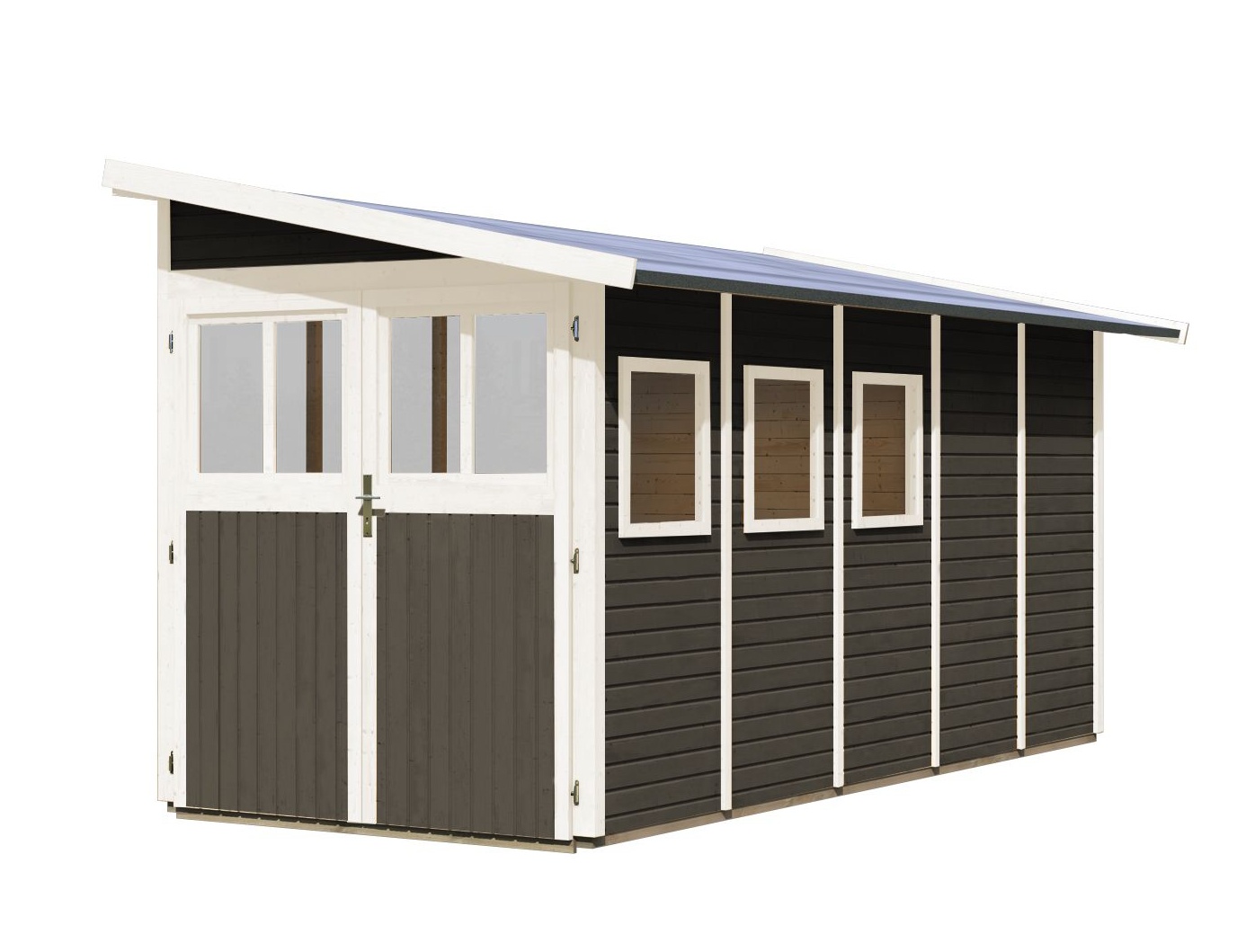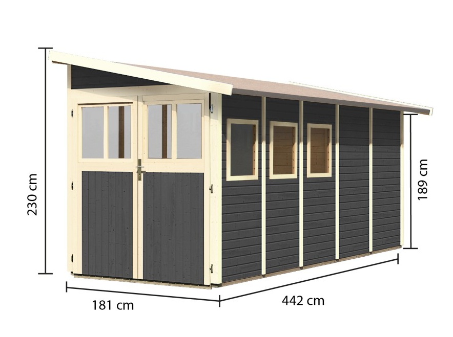 Tento model domku dodáváme v profesionálním nátěru KARIBU (odstín terragrau RAL 0604005):