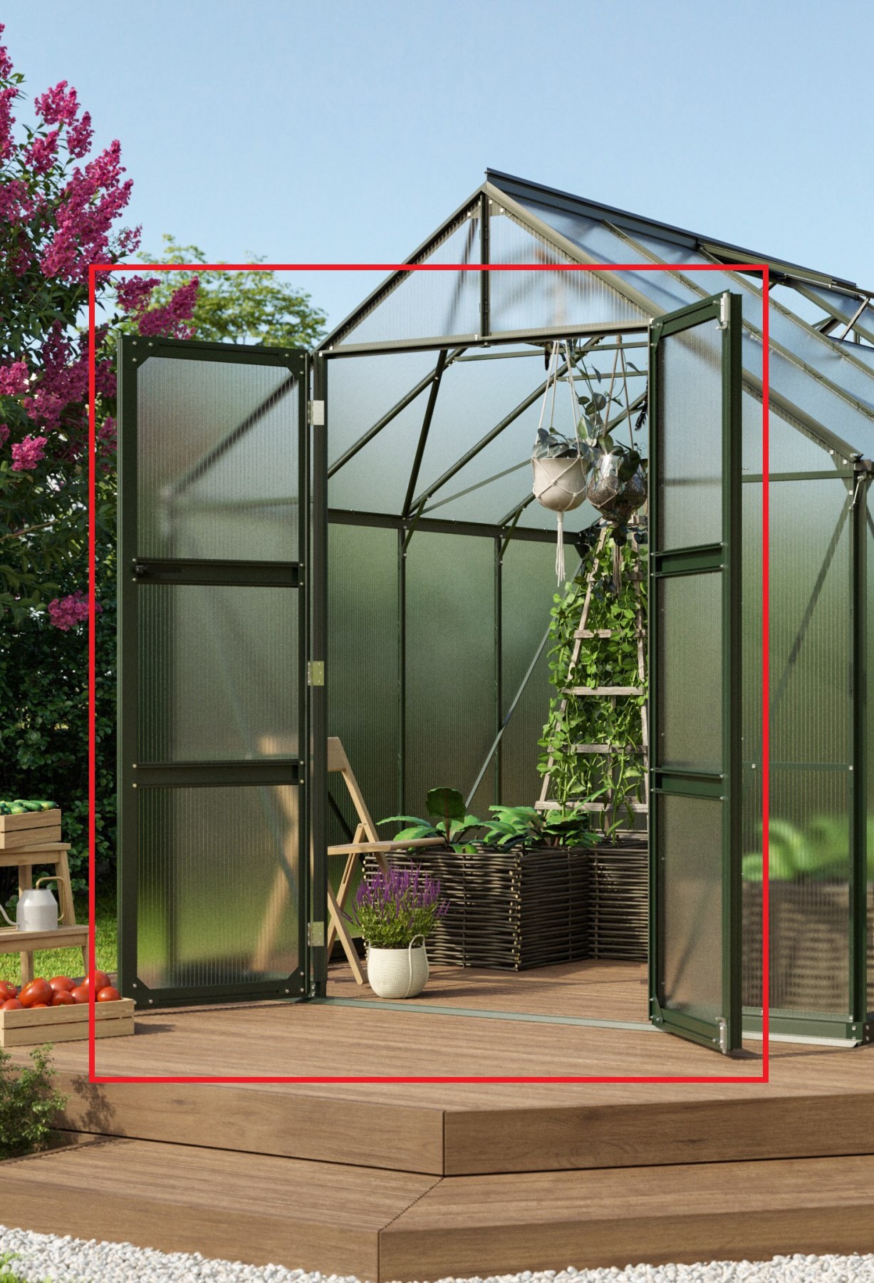 U skleníků VITAVIA SIRIUS a VITAVIA URANUS nabízíme možnost vyměnit stávající posuvné dveře za dveře na pantech. Dveřmi na pantech lze nahradit původní posuvné dveře (ty je nutné demontovat). Rám dveří je vyroben z eloxovaného hliníku v zelené barvě, který zajišťuje vysokou odolnost a ochranu před přírodními vlivy pro dlouhodobé využití.