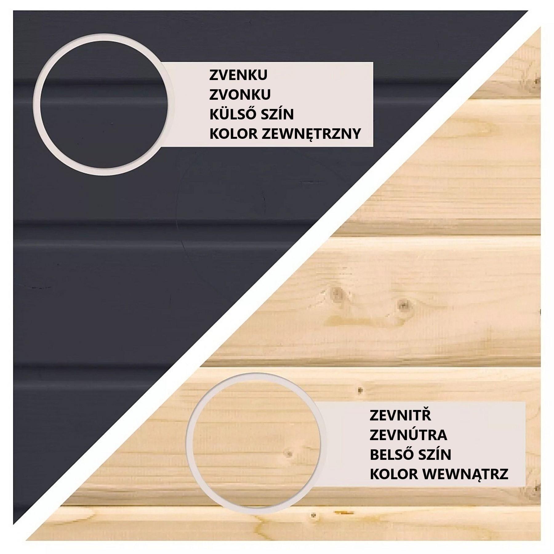 - barva: antracit (sauna) + světle šedé oplechování
