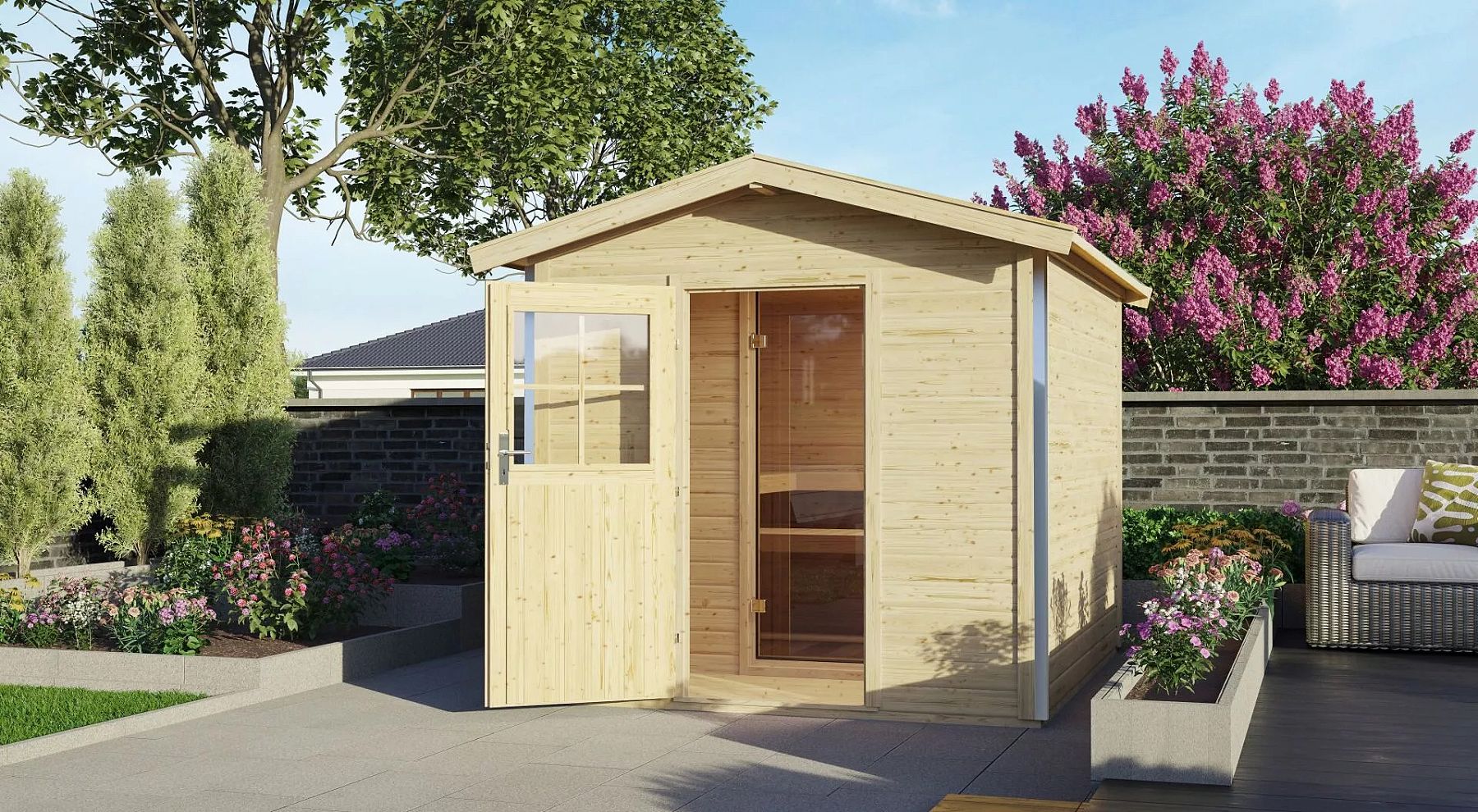 Tento saunový domek KARIBU dodáváme v provedení přírodní dřevo: