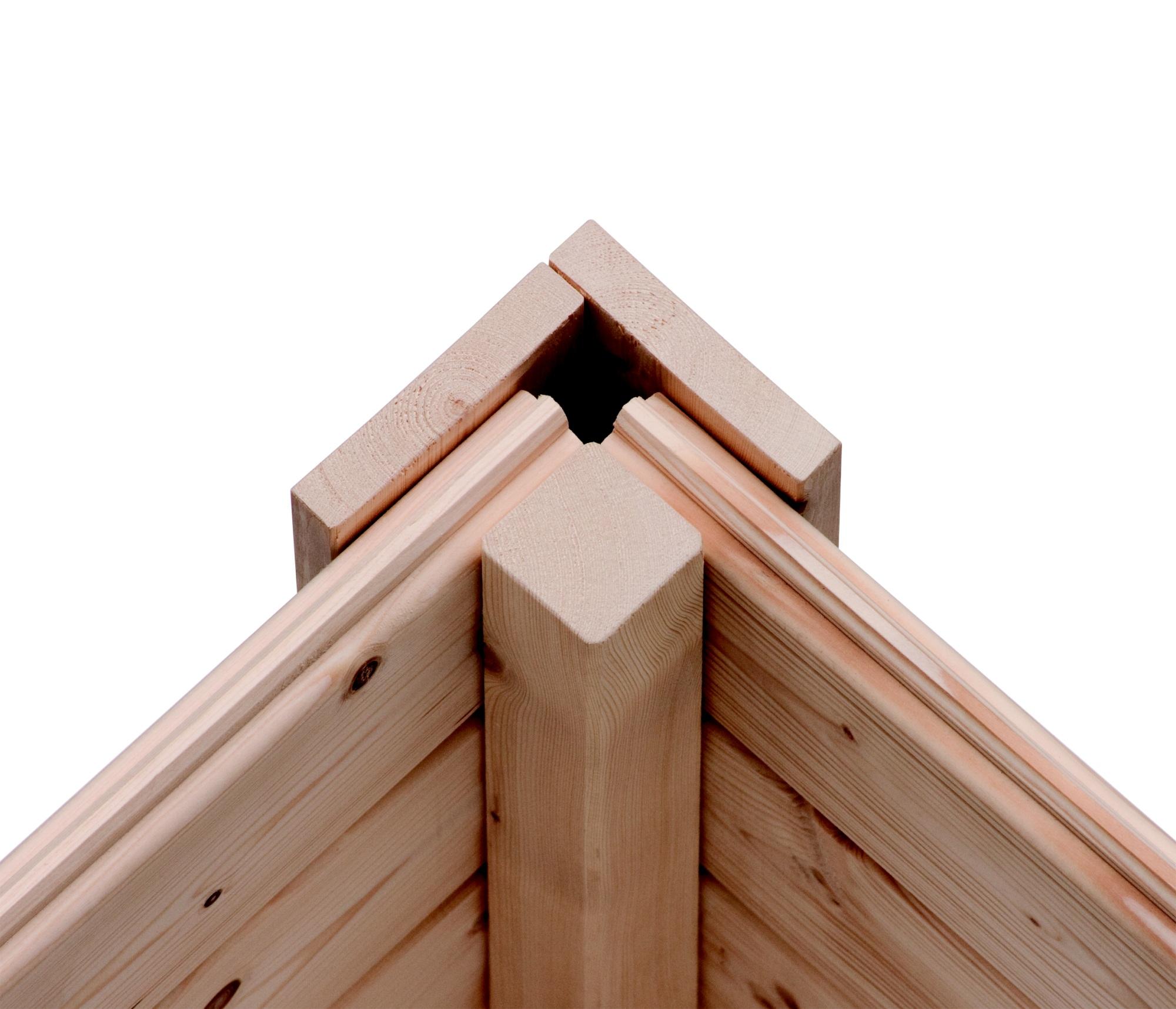 Venkovní model finské sauny pro vaši zahradu. Sauna je určená pro 3 ležící osoby. Moderní design s chromovými rohovými lištami. Její výrobce, firma KARIBU HOLZTECHNIK z německých Brém, dokázala svými výrobky úspěšně navázat na staletou tradici skandinávského saunování a současně do ní zapracovat dnešní moderní technologie. Dodáváme jako stavebnici v rozloženém stavu, kde stěny tvoří jednotlivé dřevěné profily, které pouze sesadíte k sobě a sešroubujete, střechu tvoří celistvá deska. To garantuje jednoduchou montáž, kterou zvládne každý domácí kutil. Stěny sauny jsou složeny ze speciálně hlazených prken s dvojitým perem a drážkou, což garantuje neobyčejnou pevnost spoje. Aby teplo z vnitřních prostor sauny nemohlo unikat, je instalován druhý strop z rámové konstrukce s minerální izolační vatou o tloušťce 42 mm.