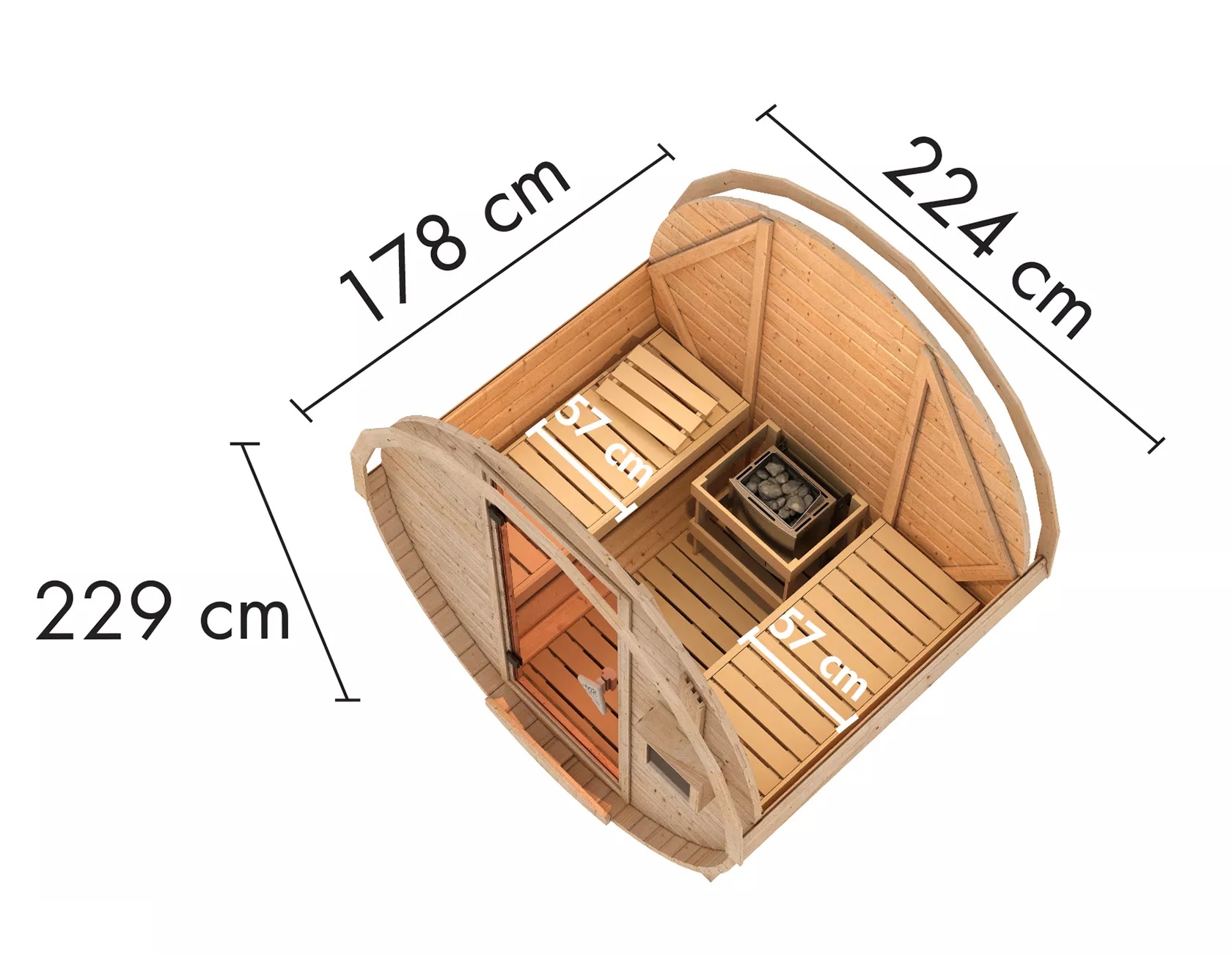 - vnitřní rozměr sauny: š 211 x h 147,5 cm