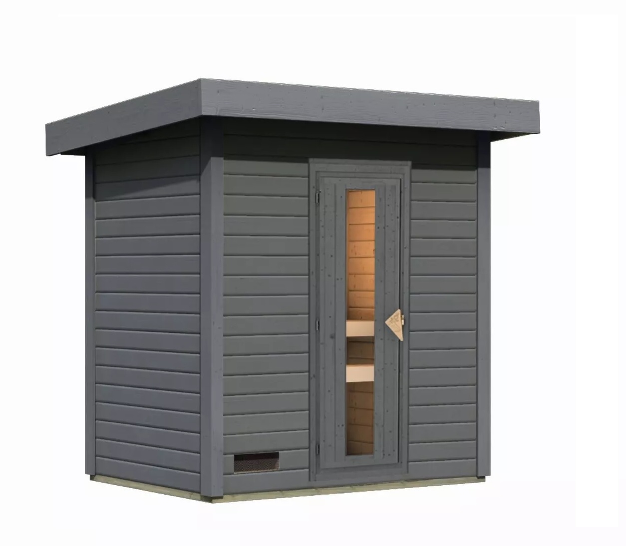 Tento model domku dodáváme v profesionálním nátěru KARIBU (odstín terragrau RAL 0604005):
