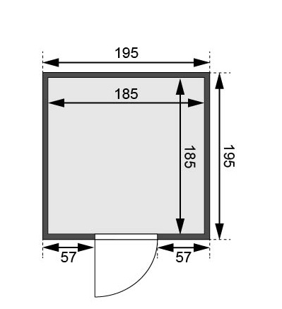 Finská sauna určená pro dvě ležící osoby. Má čtvercový rozměr š 195 x h 195 x v 187 cm. Tento model finské sauny je určený do temperovaných interiérů domu nebo bytu. Její výrobce, firma KARIBU HOLZTECHNIK z německých Brém, dokázala svými výrobky úspěšně navázat na staletou tradici skandinávského saunování a současně do ní zapracovat dnešní moderní technologie. Sauna je celá vyrobena ze dřeva severského smrku v přírodním provedení. Dřevo pochází ze vzdáleného severu Evropy a je chemicky naprosto neošetřené (není ani namořeno ani nalakováno). V důsledku toho je prosté všech známých problematických látek, které by se v průběhu saunování mohly ze dřeva uvolňovat. Tato interiérová sauna je vyrobena z masivního dřeva síly 38 mm. Stěny sauny jsou složeny ze speciálně hlazených prken s dvojitým perem a drážkou, což garantuje neobyčejnou pevnost spoje.