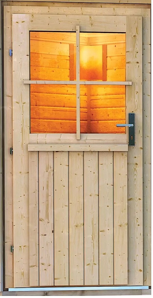Venkovní model finské sauny pro vaši zahradu. Sauna je určená pro 3 ležící osoby. Moderní design s chromovými rohovými lištami. Její výrobce, firma KARIBU HOLZTECHNIK z německých Brém, dokázala svými výrobky úspěšně navázat na staletou tradici skandinávského saunování a současně do ní zapracovat dnešní moderní technologie. Dodáváme jako stavebnici v rozloženém stavu, kde stěny tvoří jednotlivé dřevěné profily, které pouze sesadíte k sobě a sešroubujete, střechu tvoří celistvá deska. To garantuje jednoduchou montáž, kterou zvládne každý domácí kutil. Stěny sauny jsou složeny ze speciálně hlazených prken s dvojitým perem a drážkou, což garantuje neobyčejnou pevnost spoje. Aby teplo z vnitřních prostor sauny nemohlo unikat, je instalován druhý strop z rámové konstrukce s minerální izolační vatou o tloušťce 42 mm.