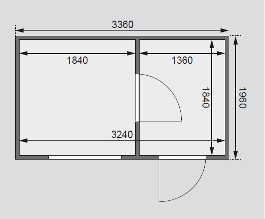 - plocha: 3,4 m2 + 2,5 m2, vnitřní prostor: 12,80 m3
