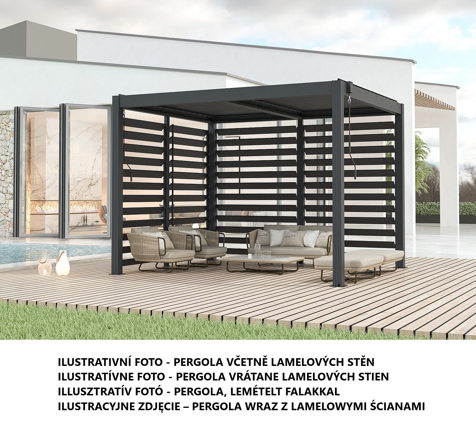 boční lamelová zástěna 3,0 m k bioklimatické pergole LANITPLAST BASIC