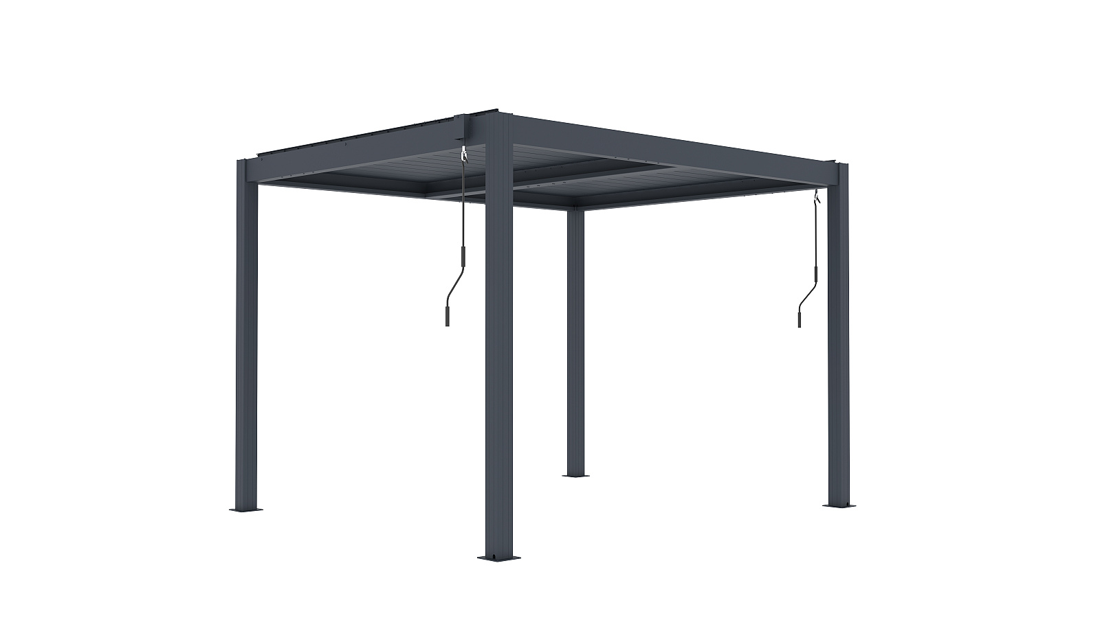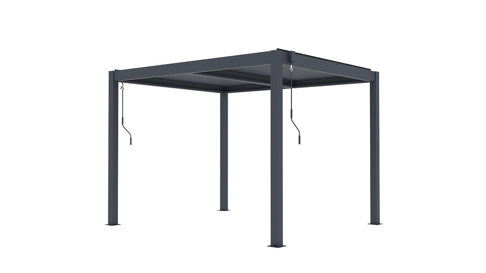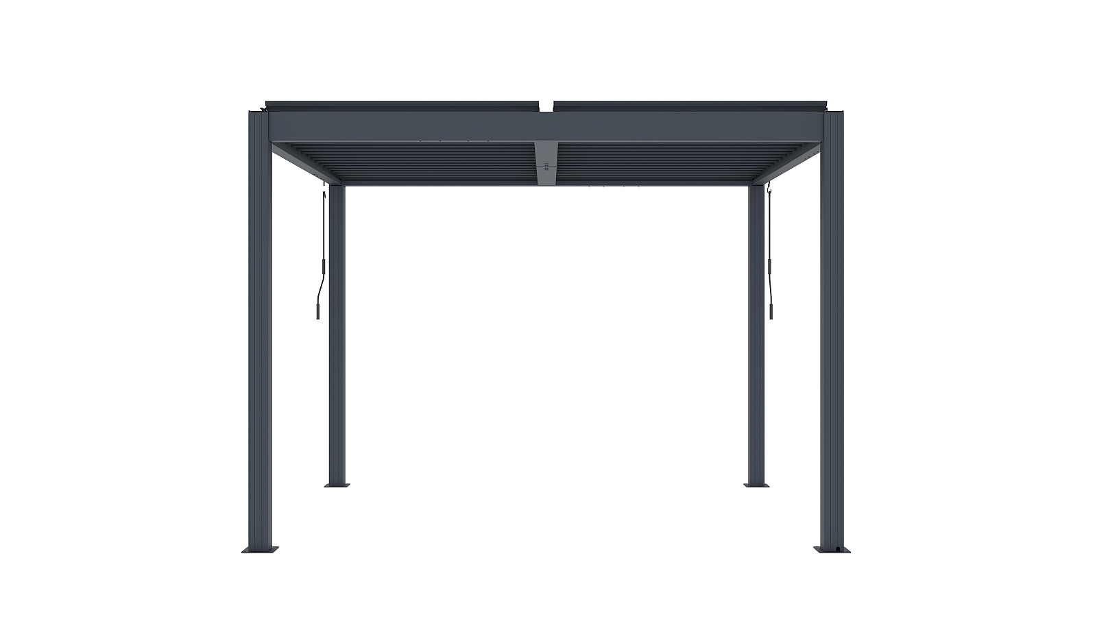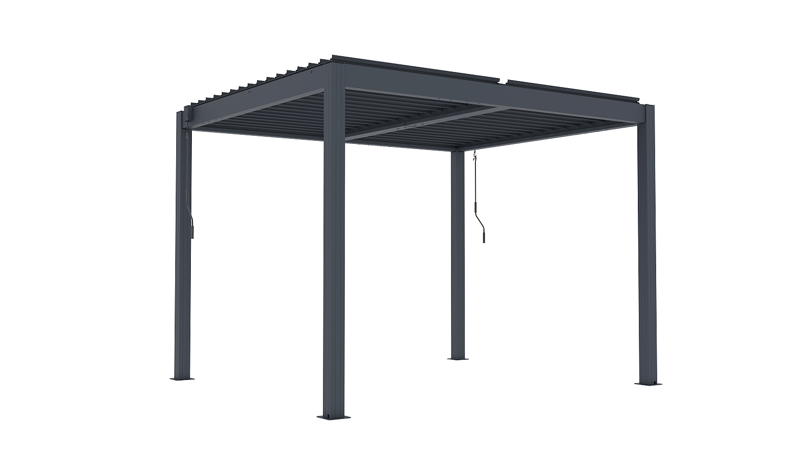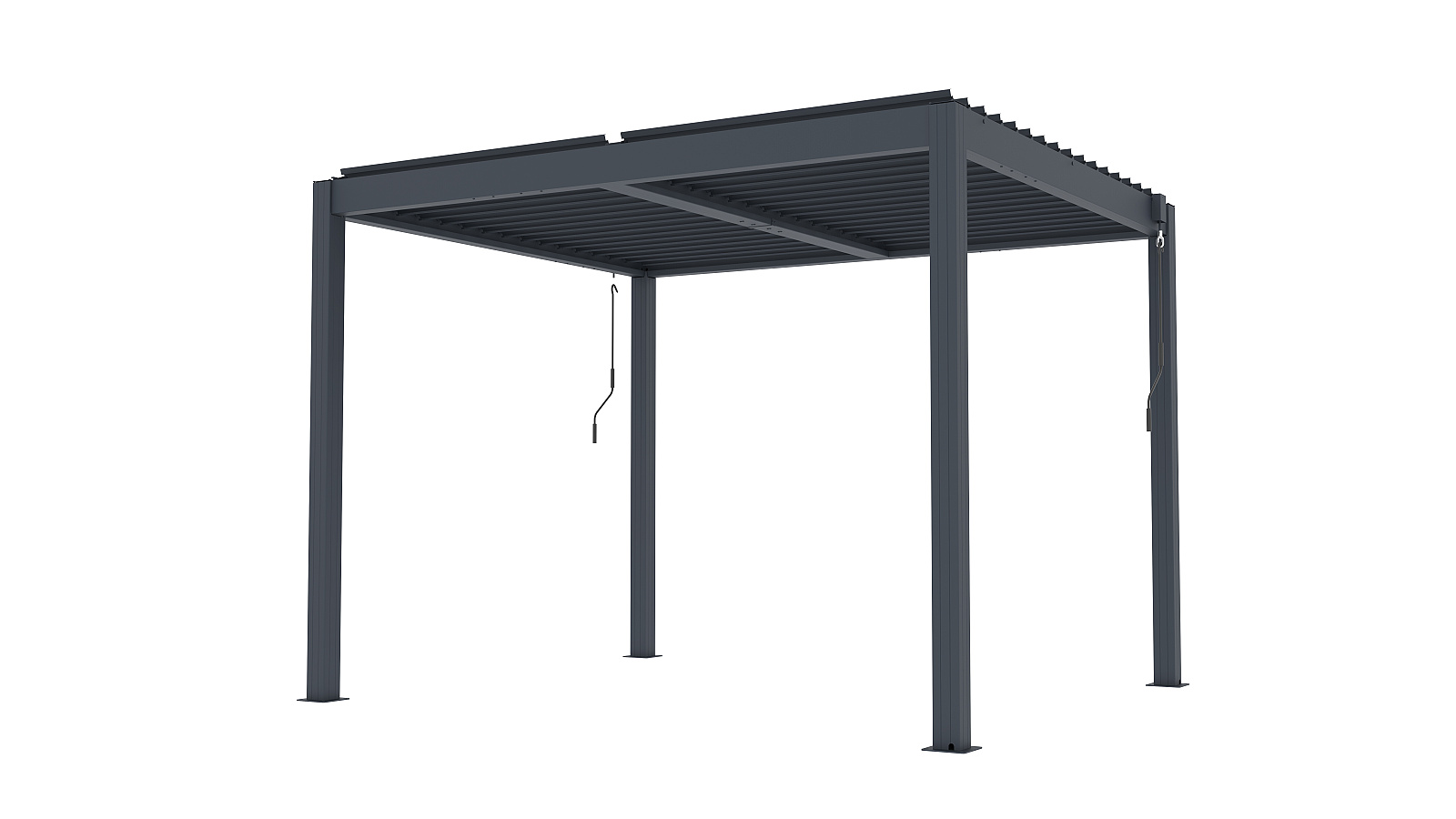 Volně stojící bioklimatická pergola LANITPLAST BASIC o rozměrech 3 x 2,5 metru je praktickým a elegantním řešením pro zastřešení venkovního posezení na Vaší zahradě. Robustní a stabilní konstrukce v moderním antracitovém odstínu RAL 7016 s matnou povrchovou úpravou se snadno začlení do jakéhokoliv prostředí a nevyžaduje kotvení do stěny. Sloupy i nosné profily jsou vyrobeny z hliníku a otočné lamely z kvalitní oceli, vše je opatřené vypalovaným práškovým lakem (komaxit). Střešní lamely z pozinkované oceli jsou rovněž opatřeny práškovou barvou, která zajišťuje vysokou odolnost vůči povětrnostním podmínkám. Celkem 32 otočných lamel poskytuje spolehlivou ochranu před slunečními paprsky i deštěm. Jejich sklon lze plynule nastavit od zcela uzavřené polohy (0°) až po plné otevření v úhlu 90°. Ovládání lamel je manuální a probíhá pomocí praktické kličky, která je konstruována tak, aby bylo možné ji naklonit a zabránit tak poškození povrchu pergoly při manipulaci. Její umístění navíc umožňuje bezproblémové používání dalších doplňků, jako jsou boční zástěny nebo moskytiéry, aniž by omezovala jejich funkčnost.