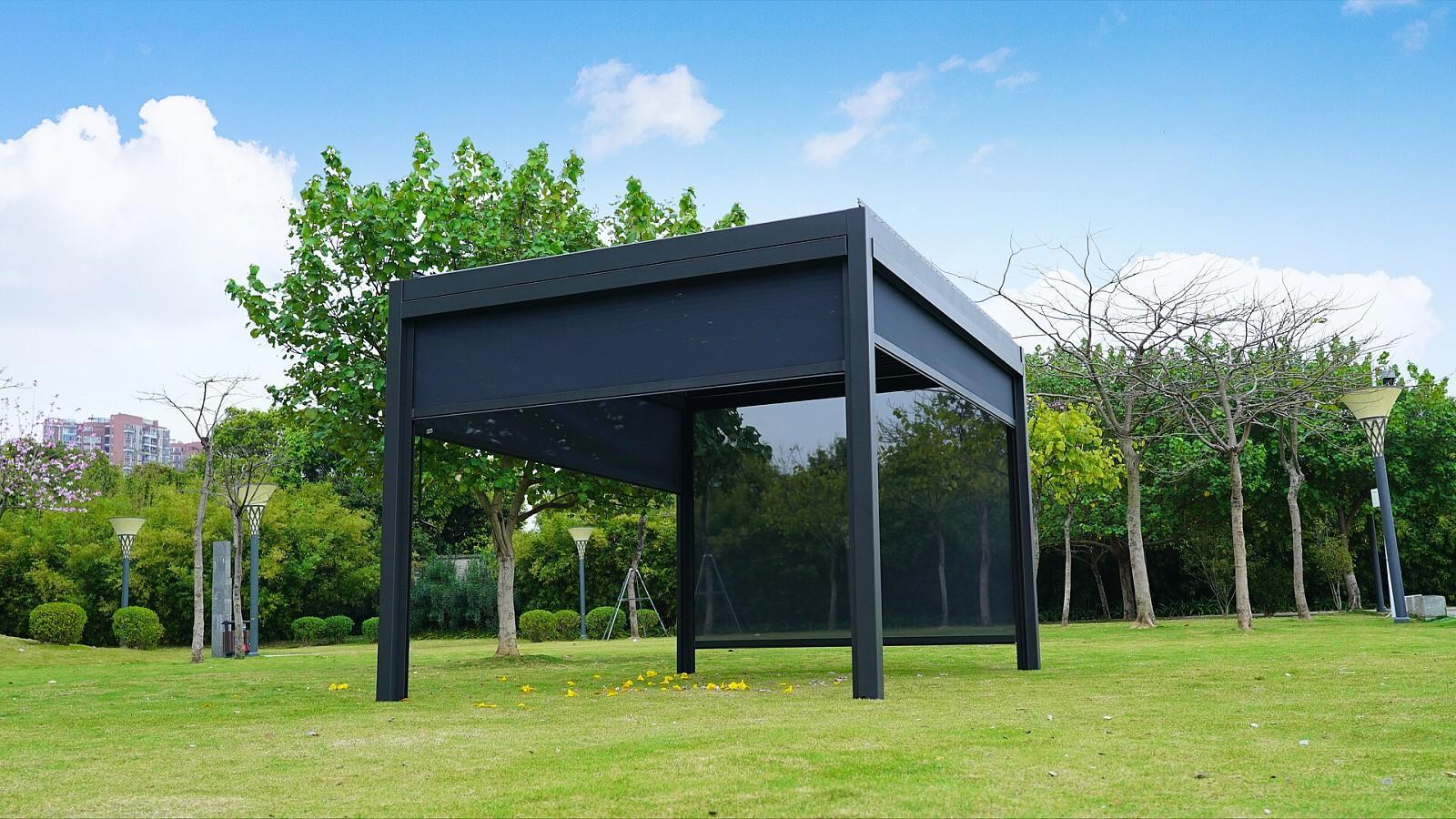 - při silném větru a jiných nepříznivých podmínkách by měla být vytažená nahoru do pouzdra, aby nedošlo k poškození rolety nebo celé pergoly
