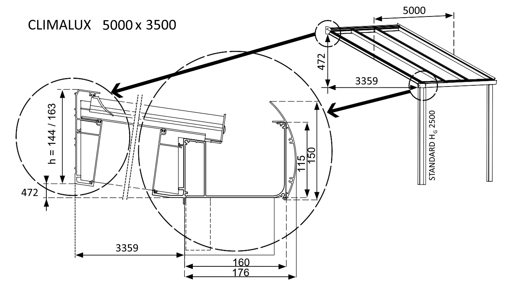 Pergola CLIMALUX je robustní pergolou belgické značky Skylux vyrobená z masivní hliníkové konstrukce zasklená dutinkovým sedmistěnným polykarbonátem o síle 16 mm. Designem jde o moderní architektonický tvar pergoly s klasickou pultovou střechou a praktickou jednořadou oporou. Perfektně tak pasuje moderním stavbám. Po technické stránce vyniká pergola Climalux nadstandardními materiálovými a technologickými parametry.