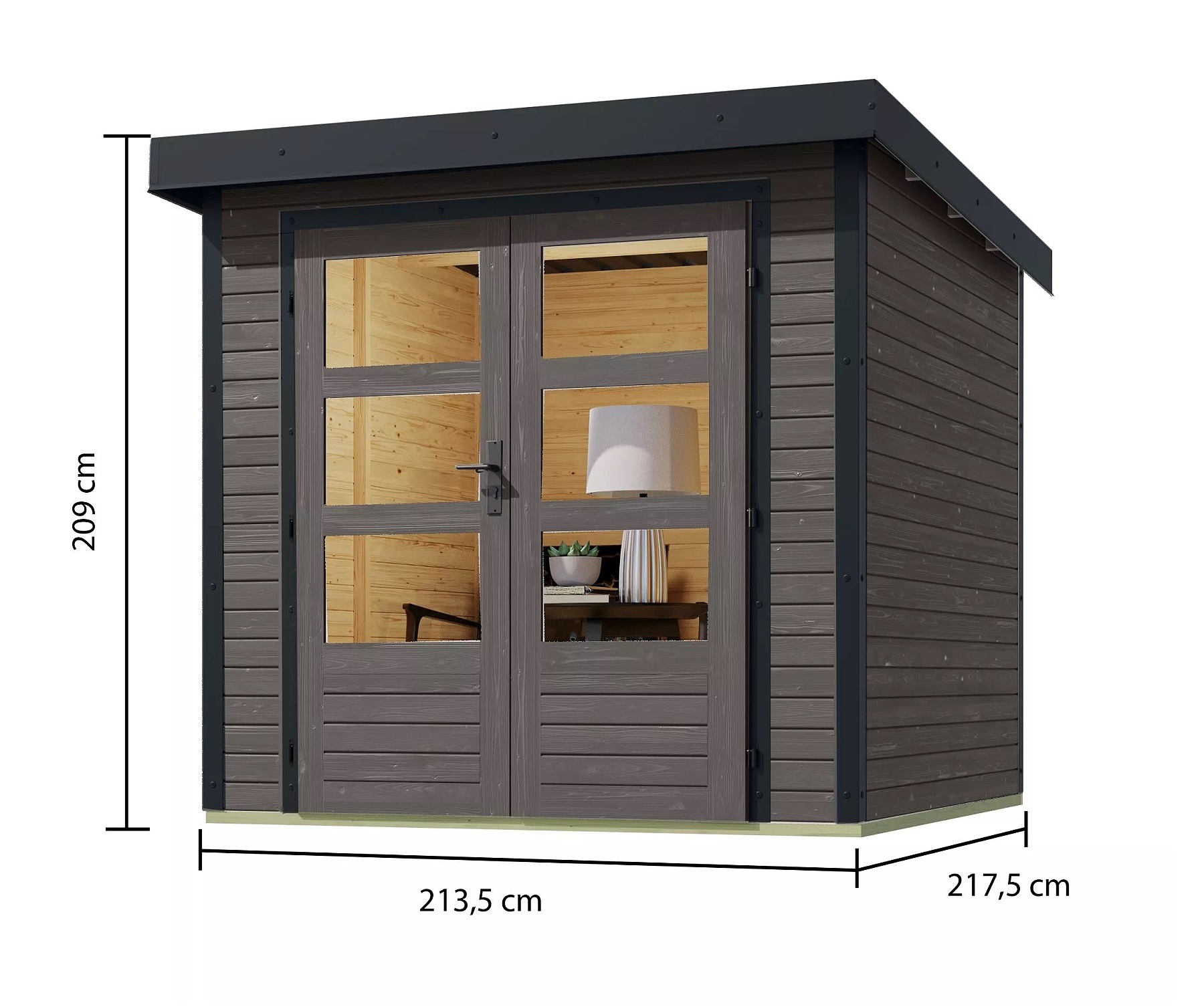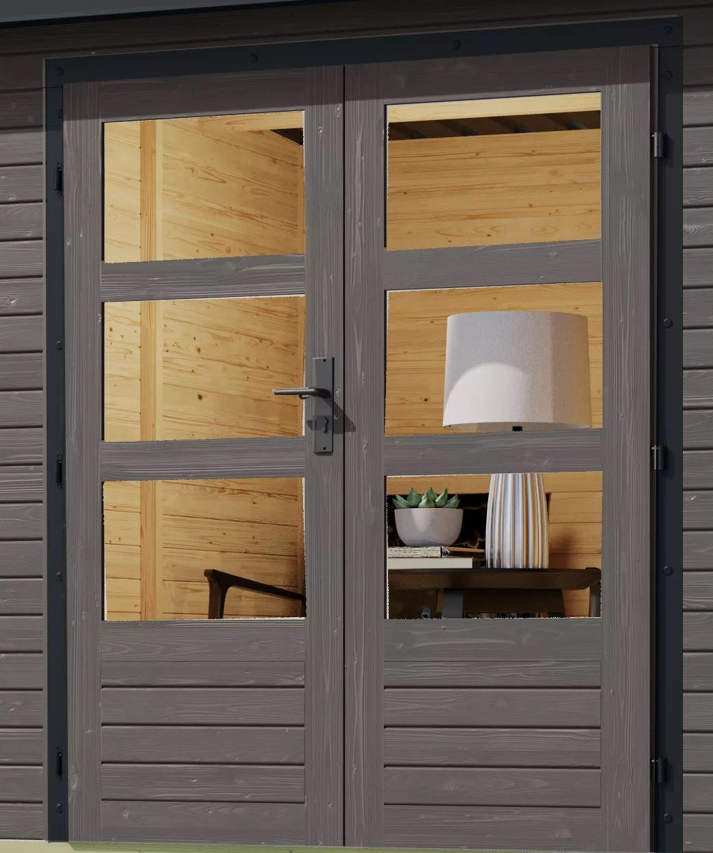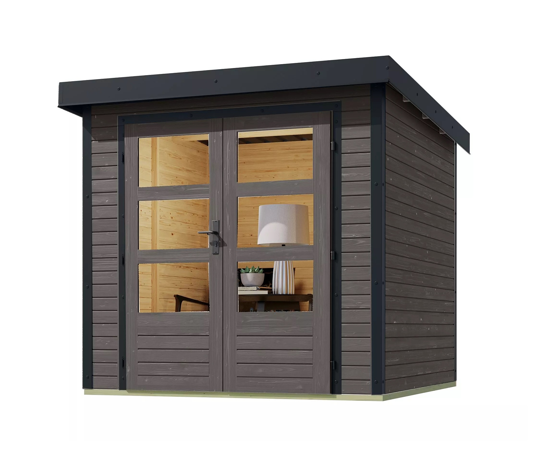 Tento model domku dodáváme v profesionálním nátěru KARIBU (odstín terragrau RAL 0604005):