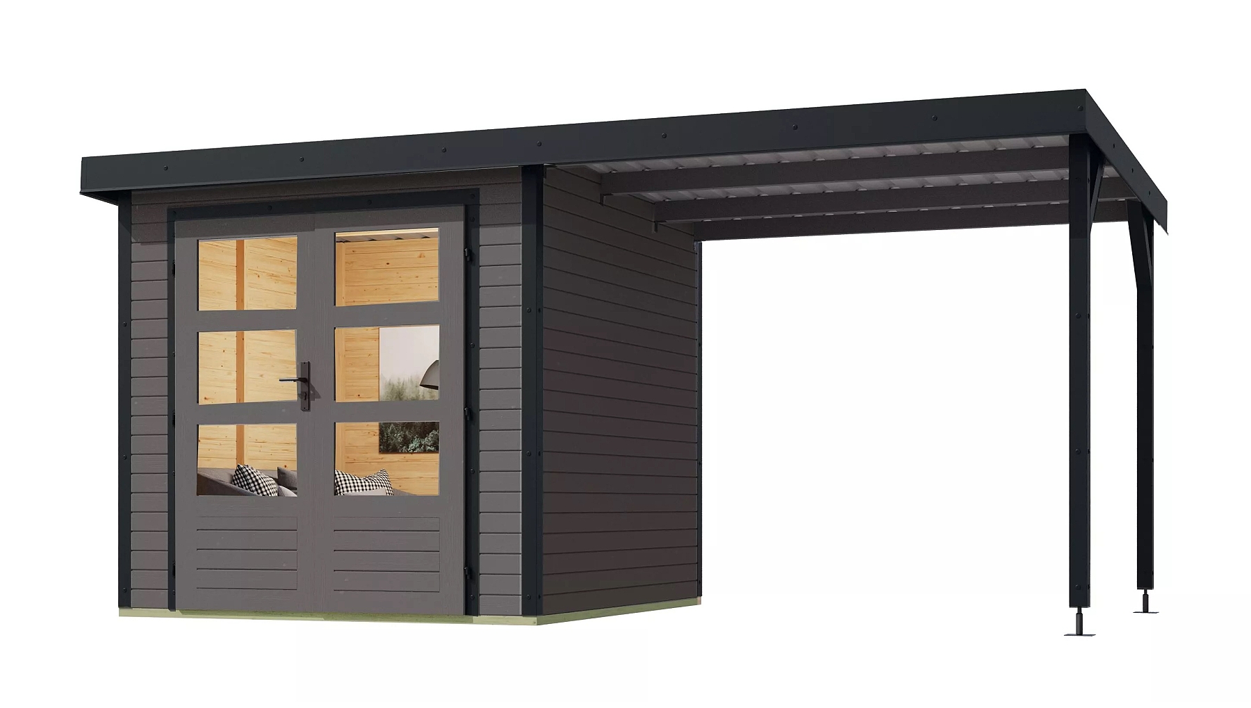 Tento model domku dodáváme v profesionálním nátěru KARIBU (odstín terragrau RAL 0604005):