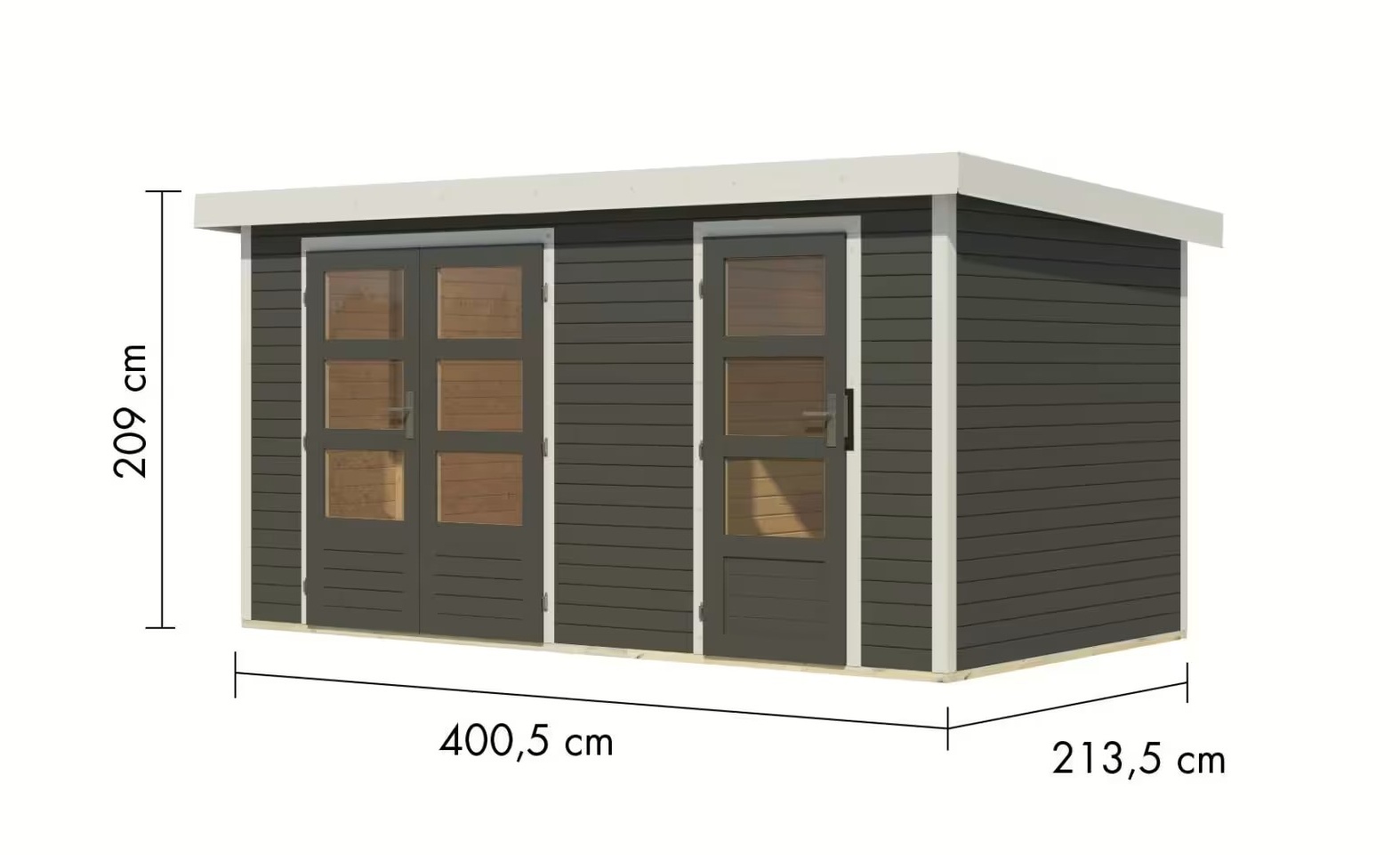Tento model domku dodáváme v profesionálním nátěru KARIBU (odstín terragrau RAL 0604005):