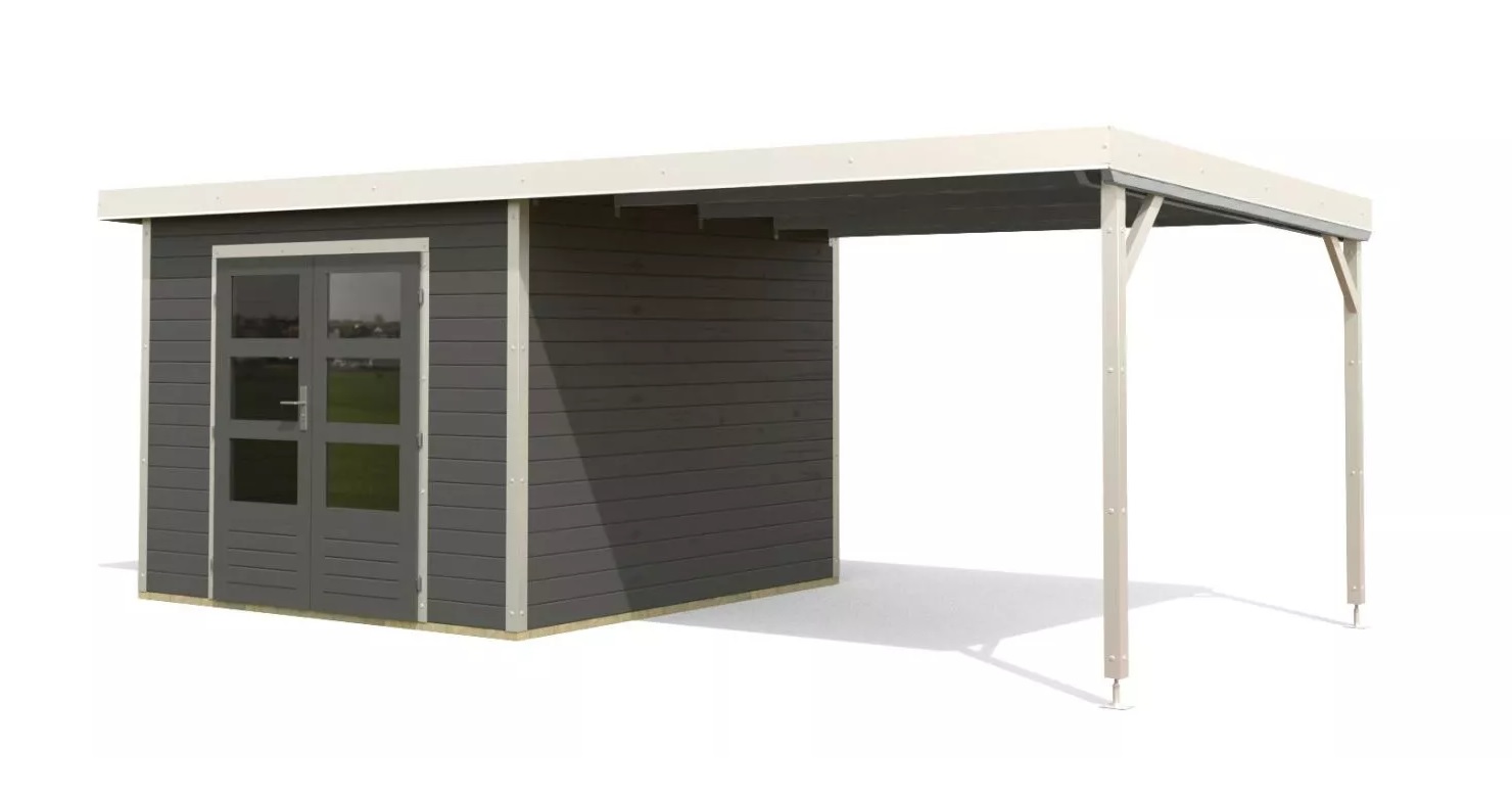 Tento model domku dodáváme v profesionálním nátěru KARIBU (odstín terragrau RAL 0604005):