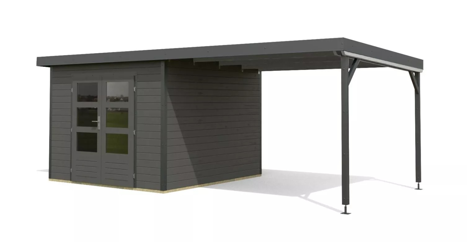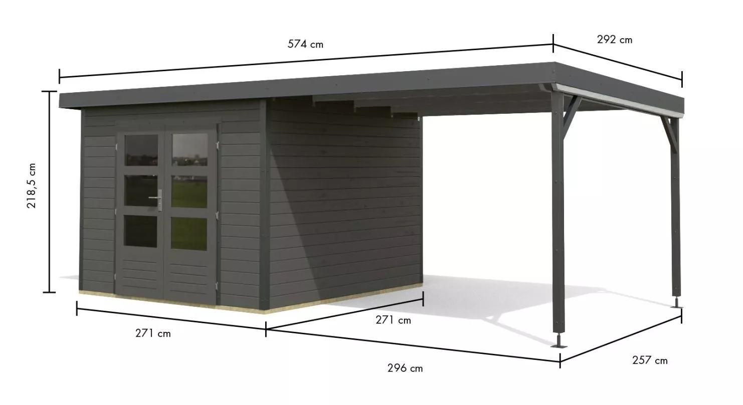 Tento model domku dodáváme v profesionálním nátěru KARIBU (odstín terragrau RAL 0604005):