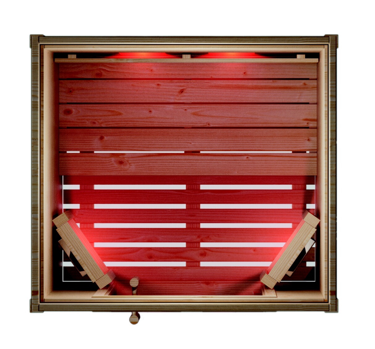 - sauna je vyrobená ze širších vodorovných dřevěných palubek se skleněnými jednokřídlými dveřmi