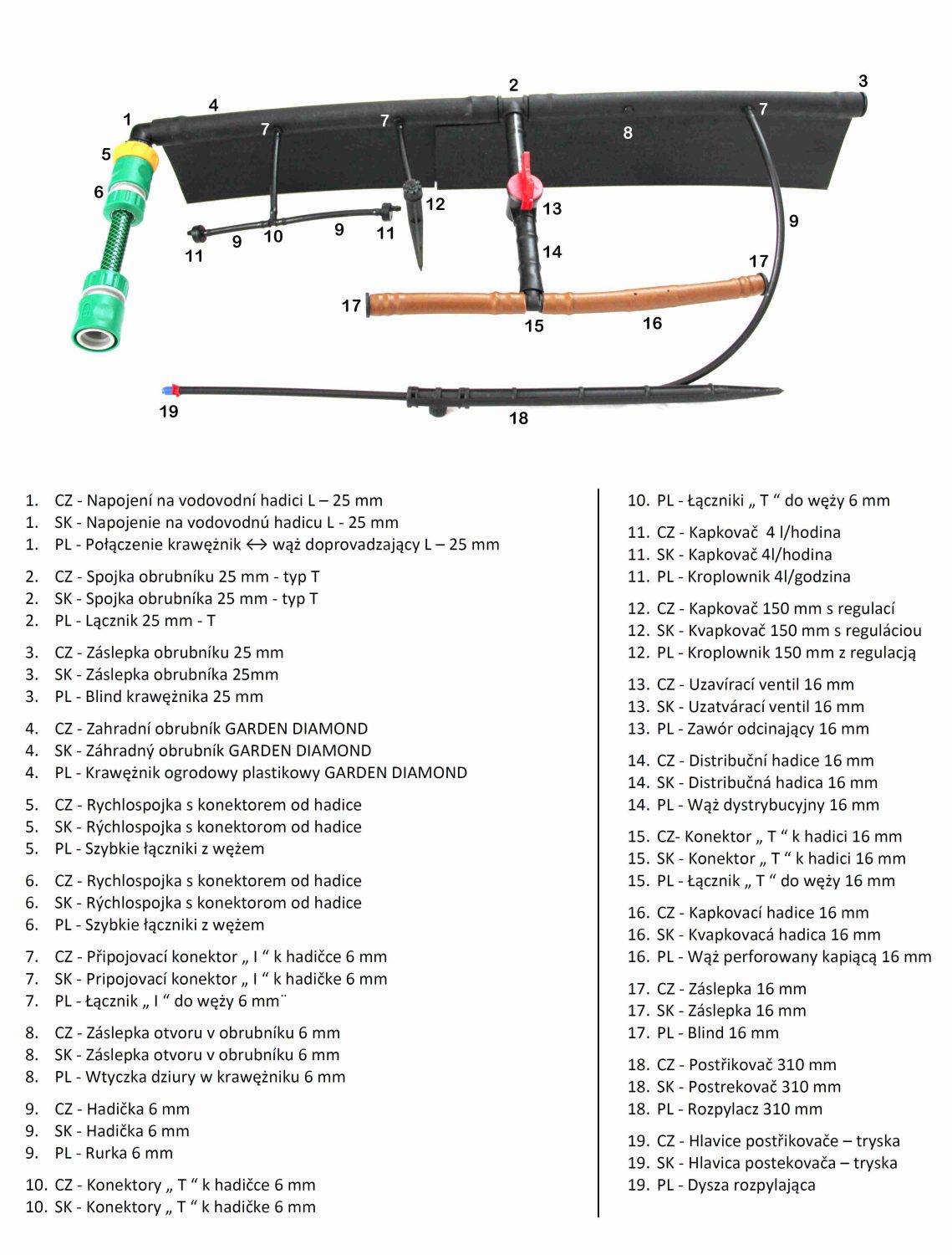 Plastový kolík pro pevné ukotvení zahradního obrubníku do země. Kolíkem lze zajistit podélné spojení dvou obrubníků.