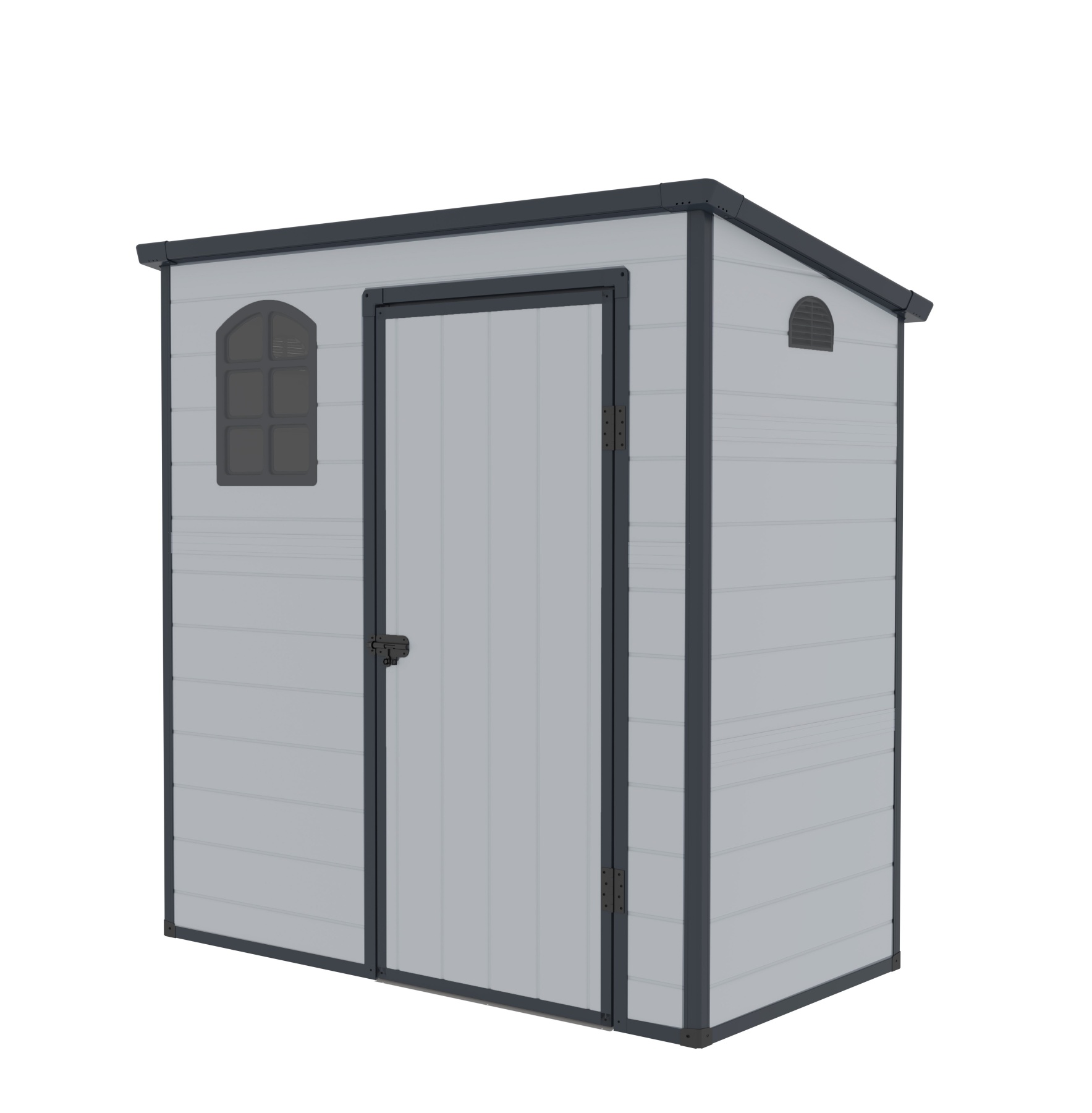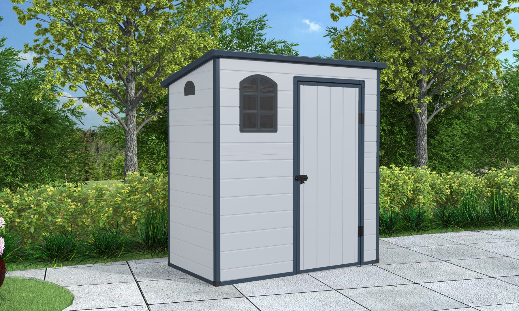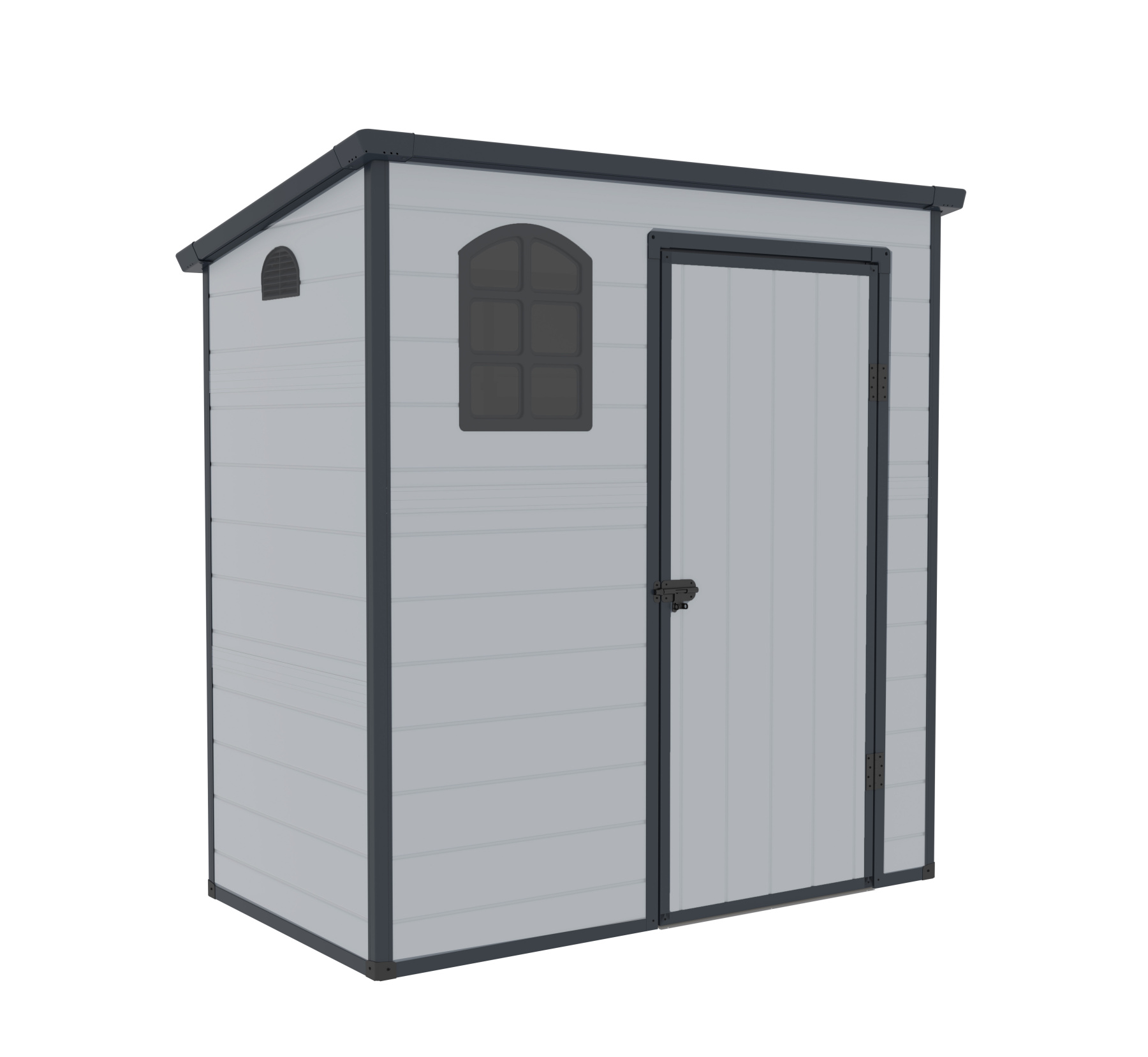Elegantní designově zajímavý plastový domek VERDAL 64. Prakticky bezúdržbový zahradní domek využijete pro uskladnění zahradního nářadí, jízdního kola, sekačky, příslušenství k bazénu, dřeva atd. S moderním designem a snadnou montáží je tento domek připraven poskytnout vám praktický a stylový uložný prostor po celý rok.