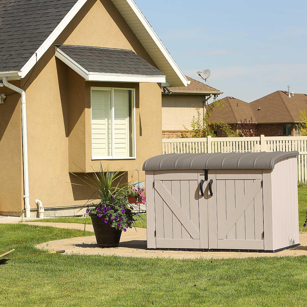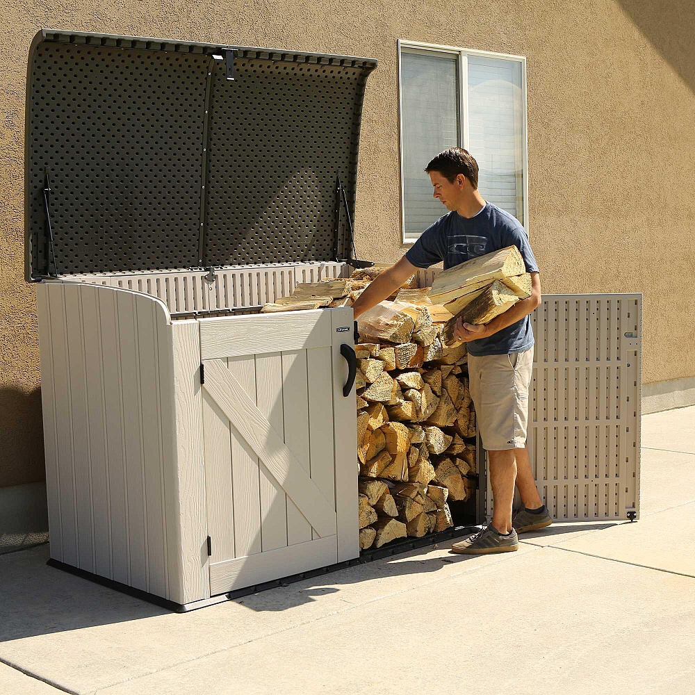 Plastový domek / úložný box "nové generace" k uskladnění dřeva, popelnic, sportovních, bazénových, grilovacích, campingových, motoristických potřeb. Moderní design, snadná montáž, celoroční použití. Box domek má nosnou kovovou konstrukci a stěny, střecha, dvojité dveře, podlaha jsou vyrobeny z masivního velmi odolného a prakticky nerozbitného plastu. Plastová protiskluzová podlaha je součástí domku (je v ceně). Box je vybaven dvojitými dveřmi na pantech. Střecha je také ze dvou částí, které jsou jištěny plynovým pístem pro lehké zvednutí střechy. Toto řešení současně zajišťuje vysokou bezpečnost používání, kdy Vám střecha nemůže "přiskřípnout" prsty. Síla dvojité plastové stěny je 26 mm. Materiál boxu (extrémně odolný polyethylen s UV filtrem) nežloutne ani nekřehne, takže odpadá jeho pravidelné natírání, což je nutné v případě např. dřevěných nebo železných boxů - box je tak prakticky bezúdržbový. Box je navržen a vyroben tak, aby montáž byla co nejjednodušší a nejkratší. Jednotlivé díly pouze zaklapnete do sousedních dílů a spoj zajistíte šroubkem.
