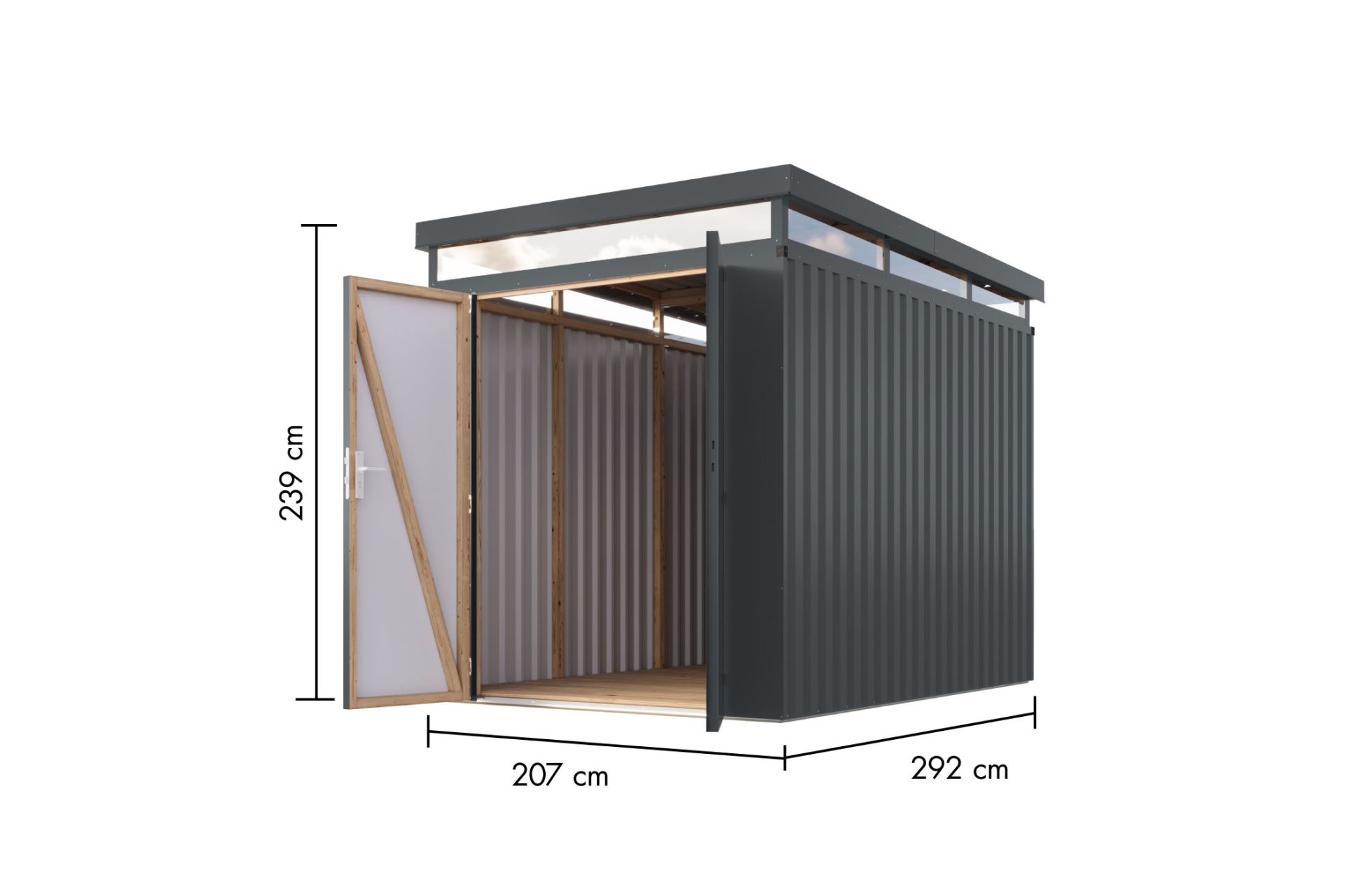 Odolný plechový domek KARIBU AURUM 2,5 nabízí robustní konstrukci, moderní design a dlouhou životnost. Stabilní rám z lepeného lamelového dřeva (BSH) zajišťuje pevnost i snadnou montáž, zatímco stěny z trapézového plechu poskytují ochranu proti povětrnostním podmínkám, UV záření i korozi a vyžadují minimální údržbu.