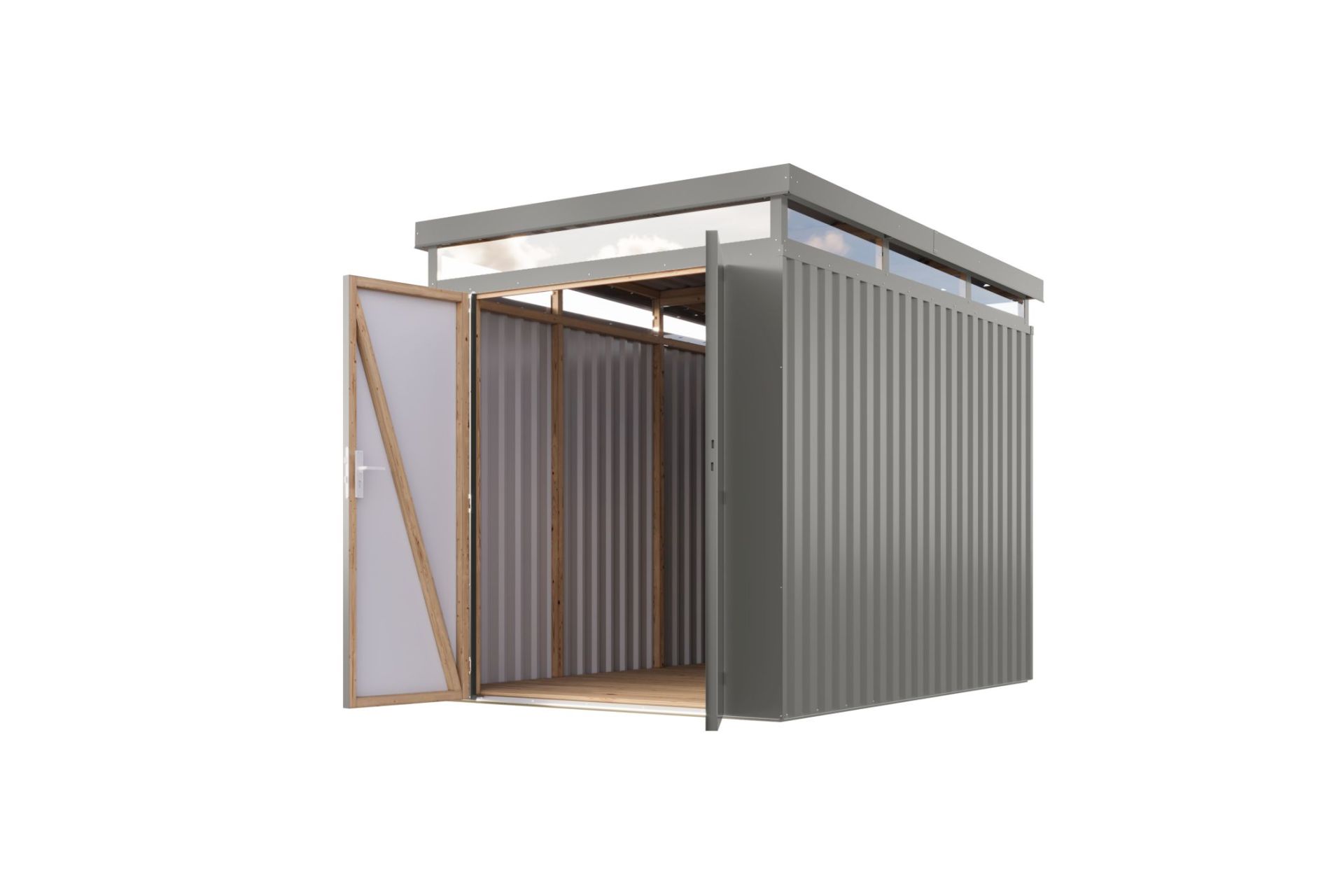 Tlakově impregnovaná spodní konstrukce chrání před vlhkostí a umožňuje snadné upevnění polic bez vrtání do kovu. Komfort doplňují dvoukřídlé dveře s cylindrickým zámkem a obvodové okno z odolného akrylového skla pro dostatek denního světla.