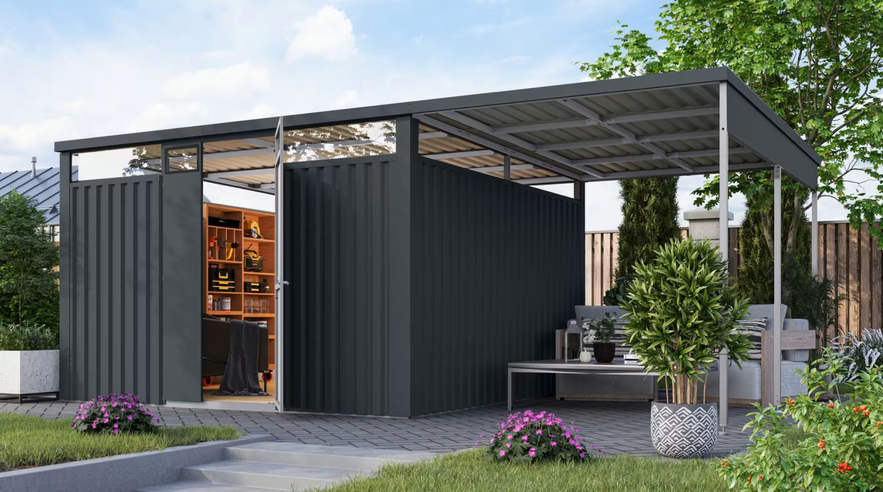 Objevte dokonalost ve své zahradě s našimi kovovými zahradními domky OSTEN, které jsou vyrobeny z práškově lakovaného trapézového plechu a vybaveny robustním rámem z pozinkovaných čtvercových ocelových trubek. Tyto vysoce kvalitní domky spojují prvotřídní funkčnost a nadčasový design, čímž vylepší váš venkovní prostor a zároveň poskytují cenný úložný prostor.