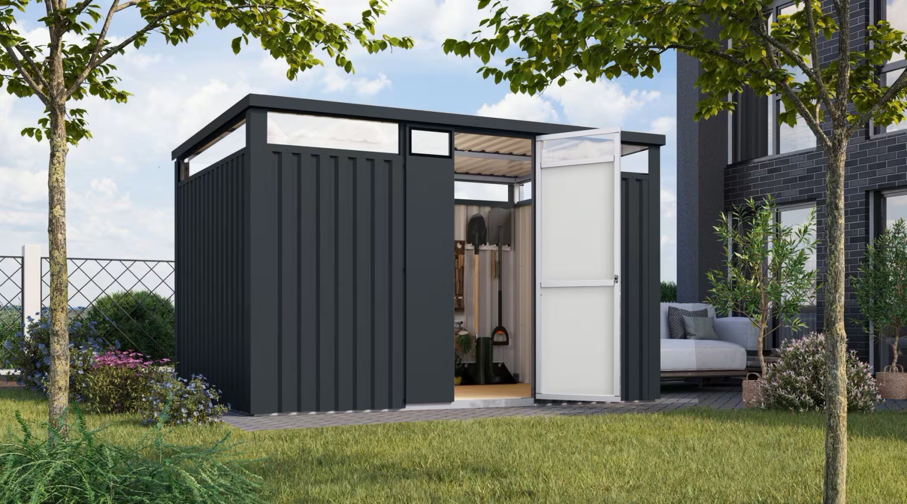 Objevte dokonalost ve své zahradě s našimi kovovými zahradními domky OSTEN, které jsou vyrobeny z práškově lakovaného trapézového plechu a vybaveny robustním rámem z pozinkovaných čtvercových ocelových trubek. Tyto vysoce kvalitní domky spojují prvotřídní funkčnost a nadčasový design, čímž vylepší váš venkovní prostor a zároveň poskytují cenný úložný prostor.