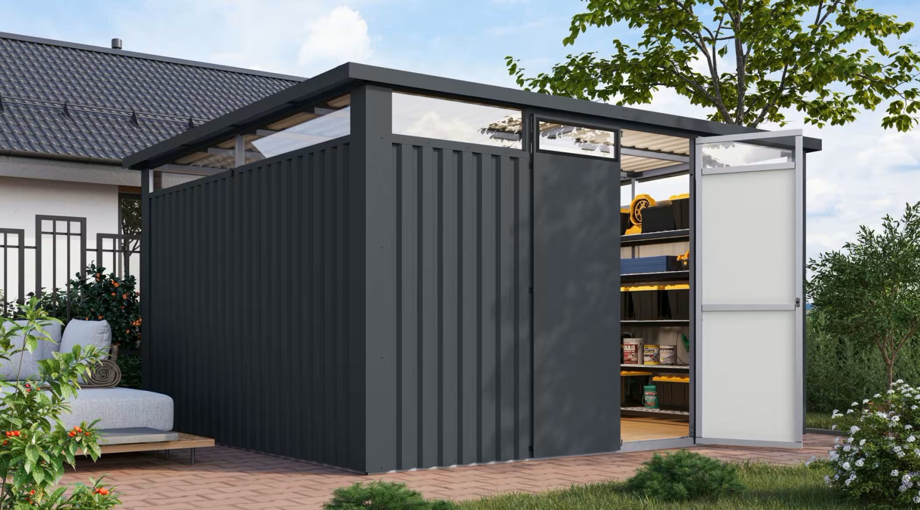 Objevte dokonalost ve své zahradě s našimi kovovými zahradními domky OSTEN, které jsou vyrobeny z práškově lakovaného trapézového plechu a vybaveny robustním rámem z pozinkovaných čtvercových ocelových trubek. Tyto vysoce kvalitní domky spojují prvotřídní funkčnost a nadčasový design, čímž vylepší váš venkovní prostor a zároveň poskytují cenný úložný prostor.