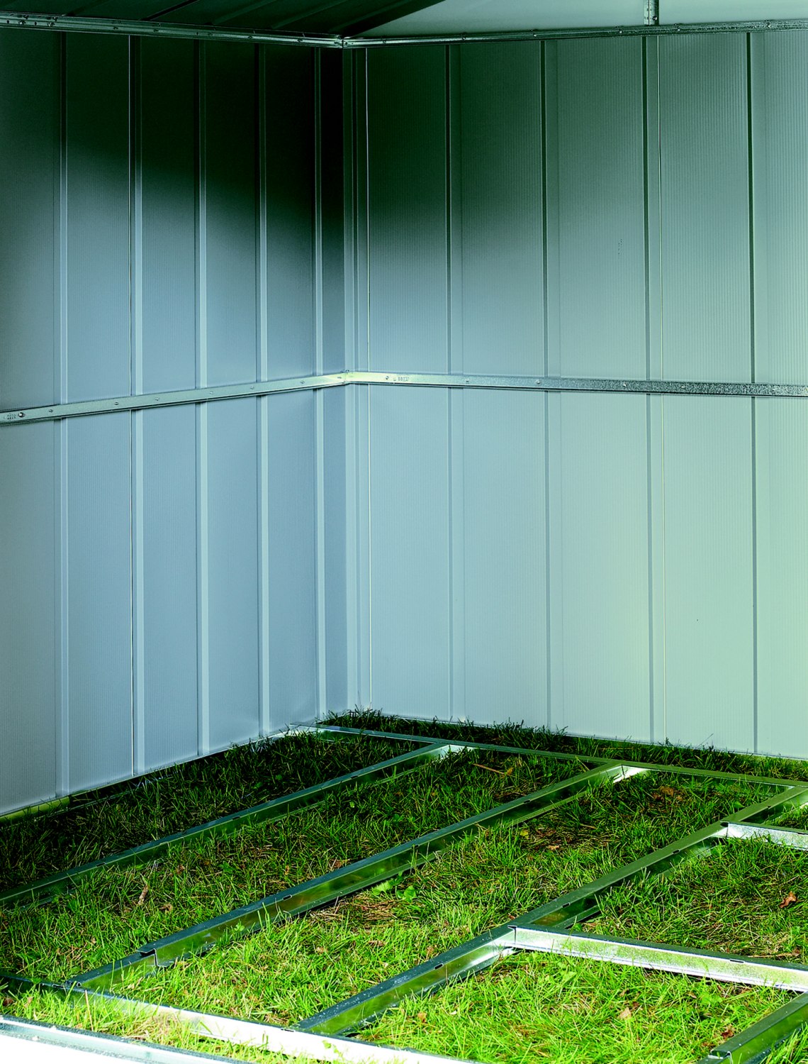 Plechová podlahová základna pro zahradní domek ARROW. Základna k domku neslouží jako kotvící prvek k zemi. Jde především o konstrukci, která zpevní celý domek a umožní velice jednoduše přimontovat dodatečnou podlahu k domku. Lze použít s jakýmkoliv modelem domku ARROW 86 / 106. Vyrobeno z pozinkovaných ocelových profilů (elektrolytické zinkování).