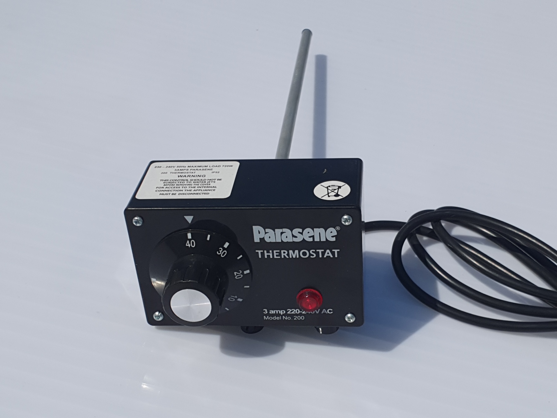 Termostat pro odporové vytápění umělého záhonu skleníku (vyhřívání misek a květníků). Teplotní rozsah použití 0o - 40oC. Výkon 240 V / 3 A. Nutno současně zakoupit ještě odporový drát ve vhodné délce. Vhodné pro všechny typy skleníků.