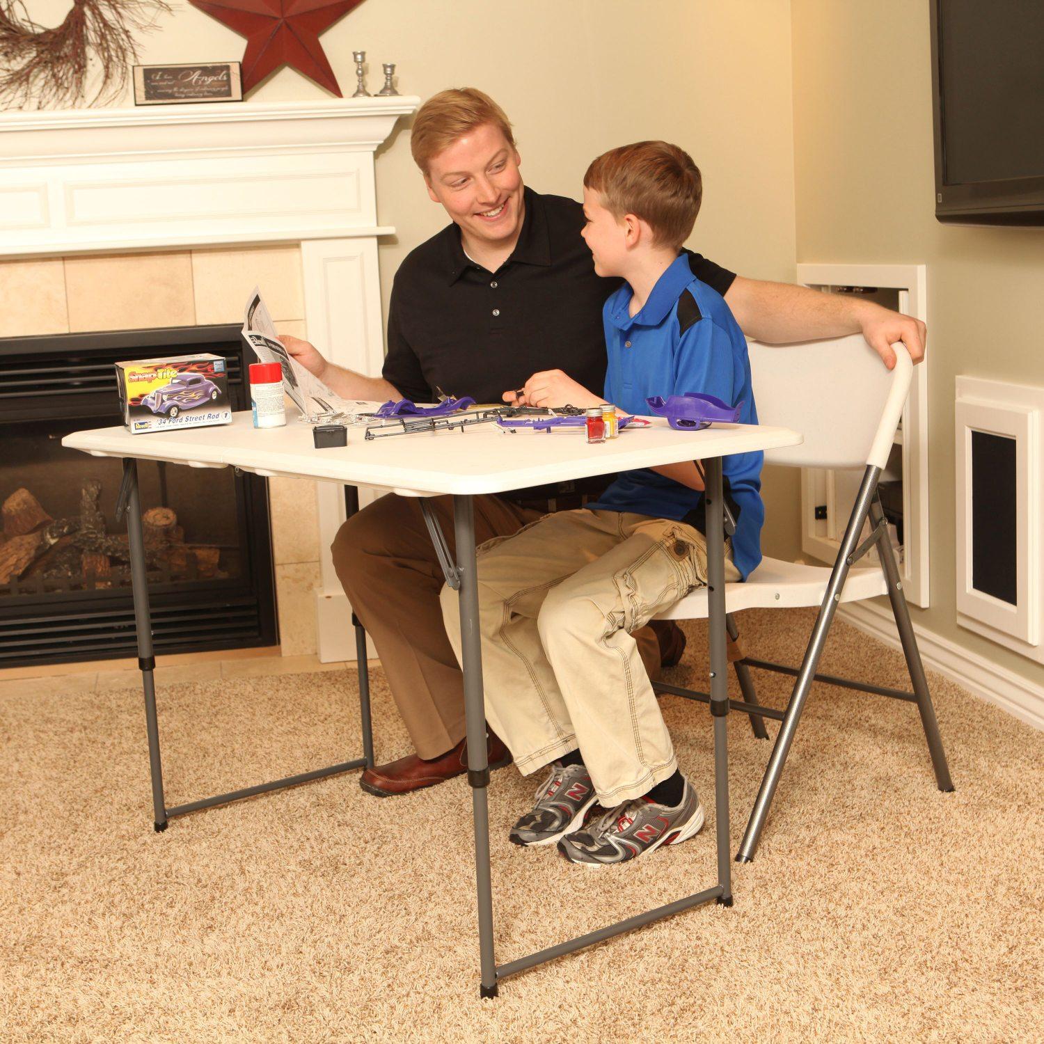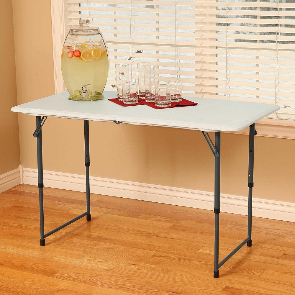Skládací stůl s nastavitelnou výškou pracovní desky vhodný do pokoje, na zahradu, do dílny. Kombinace ocelové nosné kostry a vysoce odolného UV stabilizovaného polyetylenu (HDPE). Odolnost vůči vlivu počasí. Plast na slunci nežloutne ani nekřehne. Stůl je možné jednoduše složit na polovinu.