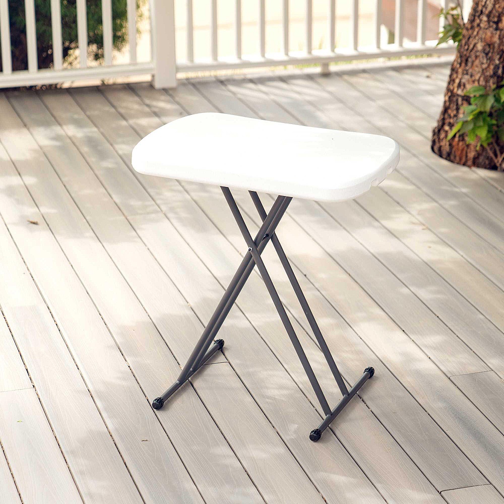 Příruční stůl vhodný do domácnosti, na zahradu, do dílny. Kombinace ocelové nosné kostry a vysoce odolného UV stabilizovaného polyetylenu (HDPE). Odolnost vůči vlivu počasí. Plast na slunci nežloutne ani nekřehne. Stůl je možné jednoduše složit.