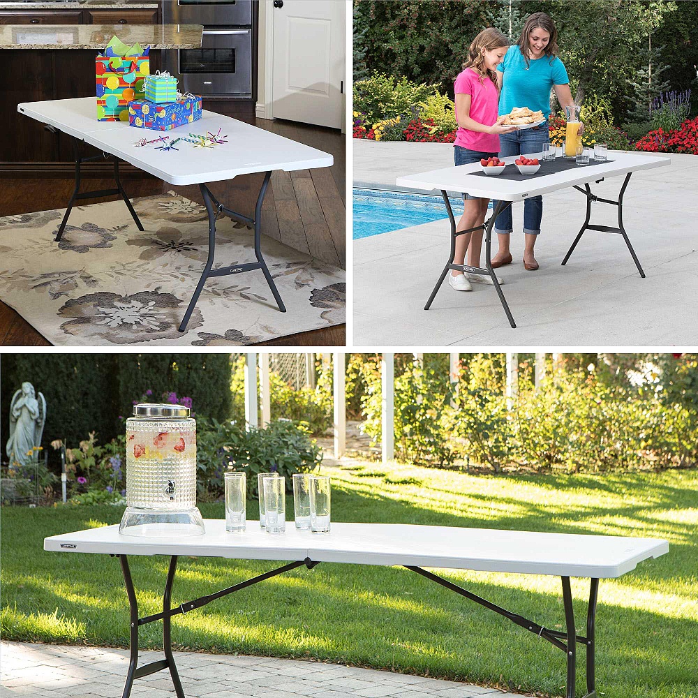 Skládací stůl vhodný do pokoje, na zahradu, do dílny. Kombinace ocelové nosné kostry a vysoce odolného UV stabilizovaného polyetylenu (HDPE). Odolnost vůči vlivu počasí. Plast na slunci nežloutne ani nekřehne. Stůl je možné jednoduše složit na polovinu.