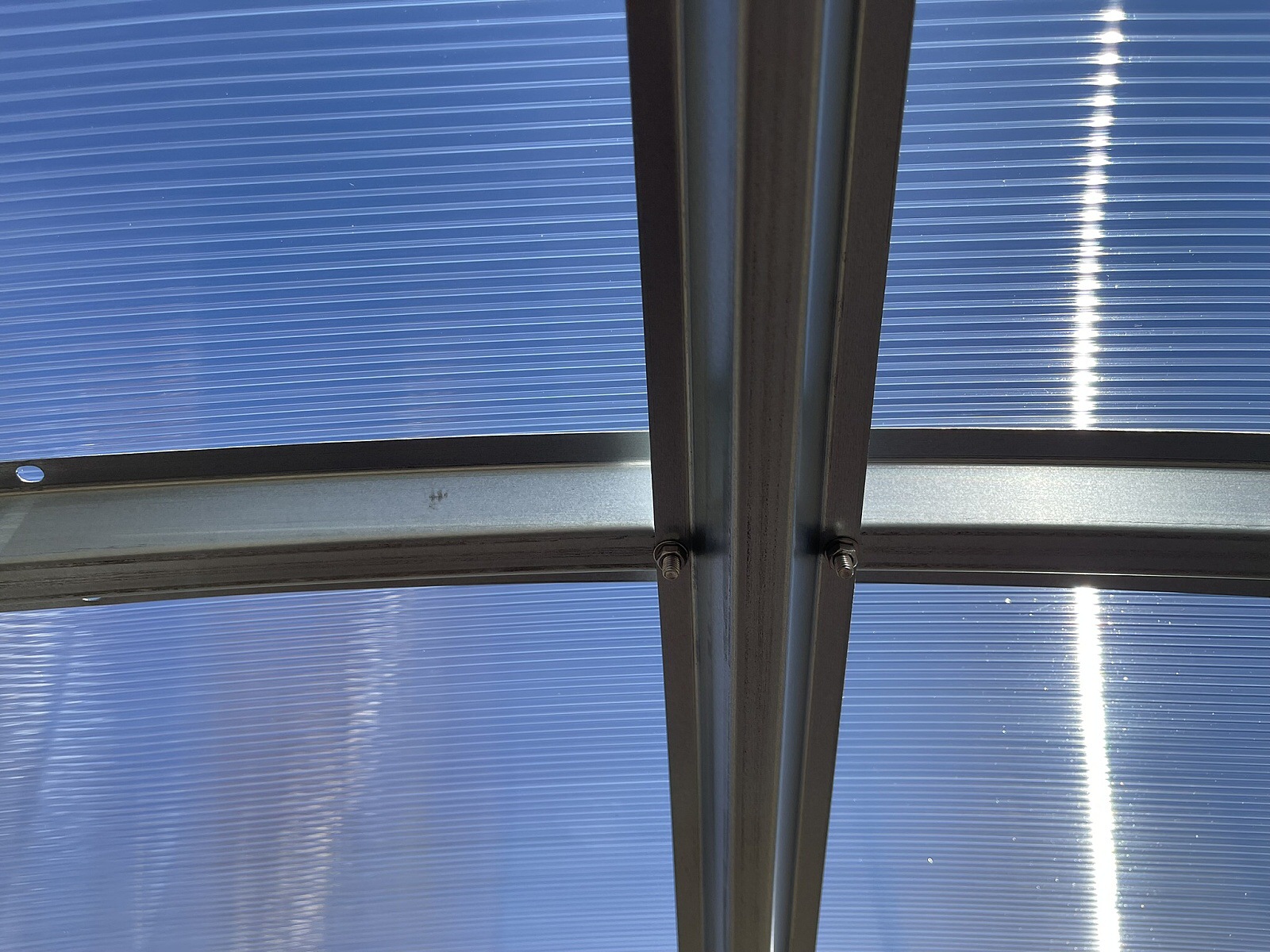 Konstrukce - konstrukce skleníku je sešroubovaná z pozinkovaných omega profilů síly 0,6 mm. Materiál profilů je galvanicky pozinkovaný. Jednotlivá žebra nosných oblouků jsou od sebe vzdálena 100 cm. Dvě podpěry na každém oblouku garantují vysokou únosnost celé konstrukce skleníku. Přední čelo skleníku má vestavěné jednokřídlé dělené dveře o světlosti 95 x 186 cm a na zadním čele je ventilační okno o rozměrech š 95 x v 90 cm. Pokud otevřete horní část dveří a zadní okno, zajistíte tím pohodlné větrání celého skleníku, aniž by do něj měly přístup děti nebo domácí zvířata. Obsahem dodávky každého skleníku je jedno střešní okno s manuálním ovládáním (otevřeno / zavřeno). K oknu doporučujeme dokoupit automatický otvírač, který otvírání a zavírání okna na základě teploty ve skleníku zařídí za Vás.