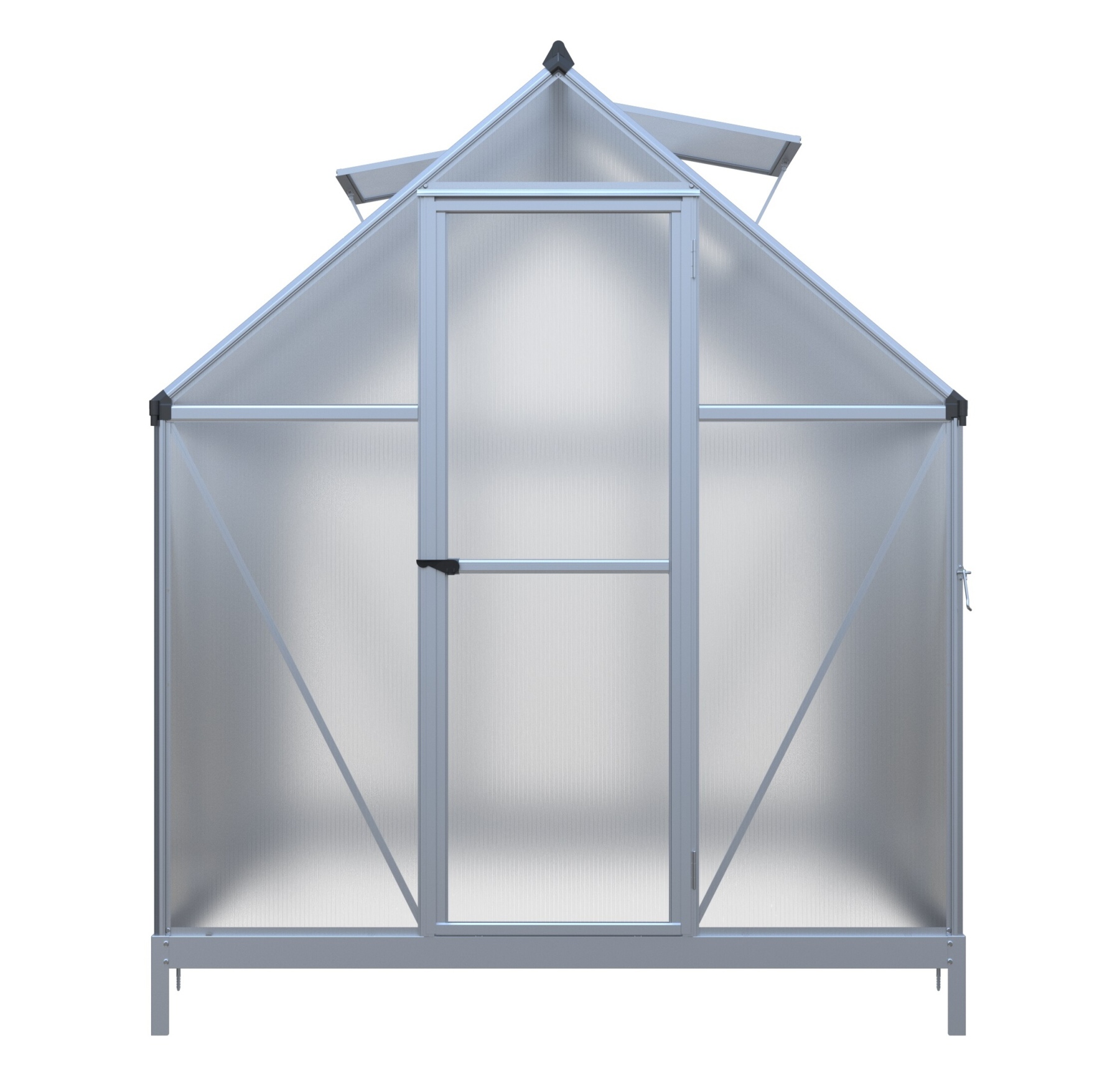 Obsahem balení jsou jednokřídlé dveře na pantech (š x v otvoru = 0,58 x 1,65 m), AL profily, prosklení, pozinkovaná ocelová základna, 2x střešní ventilační okénko s manuálním otevíráním, veškerý spojovací materiál. Ke skleníku je možné dokoupit řadu nadstandardního příslušenství - regály, automatické otvírače, teploměry, vlhkoměry, zavlažovací zařízení, elektrické odporové vytápění půdy.