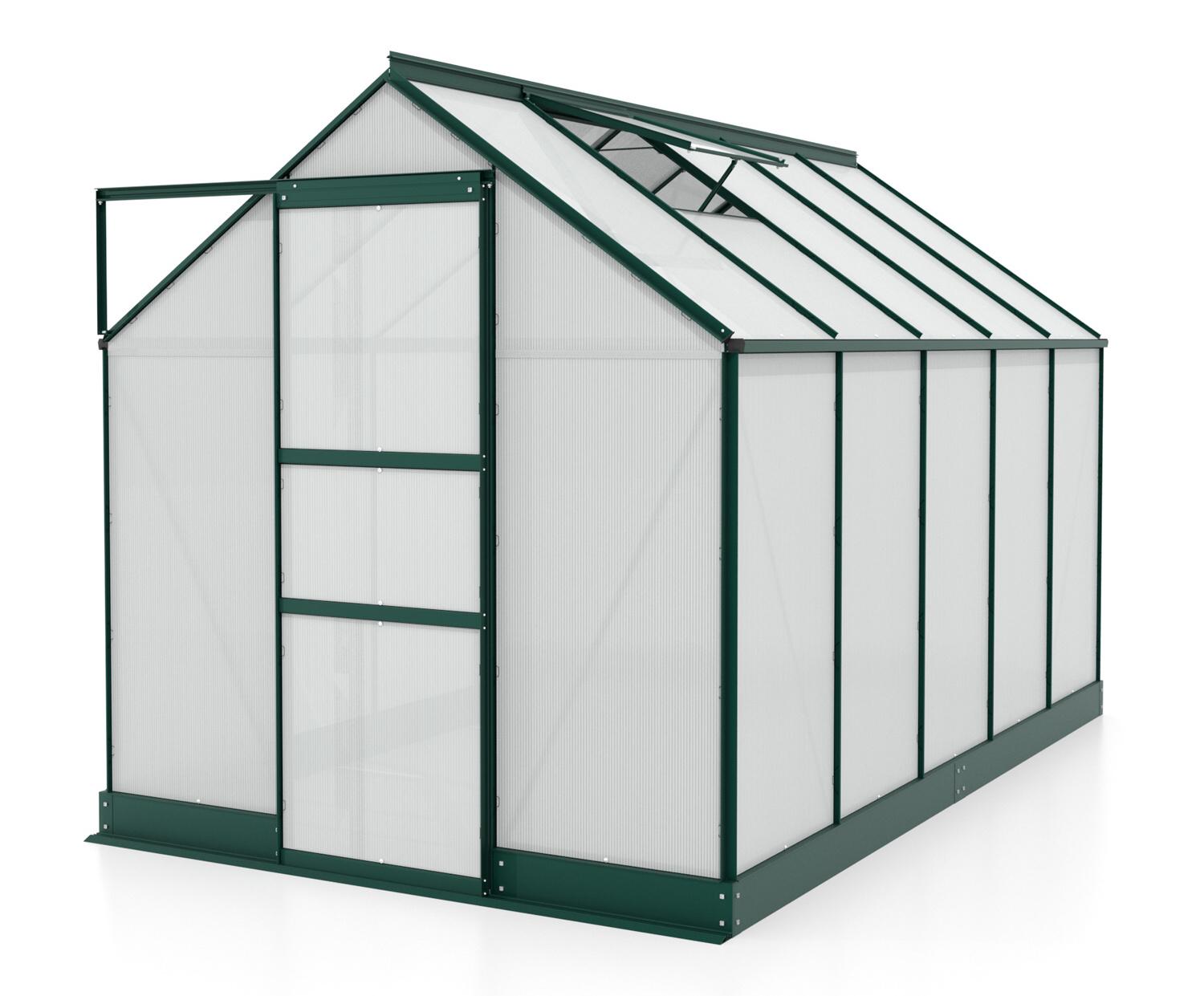 Obsahem balení jsou jednokřídlé posuvné dveře (š x v otvoru = 0,61 x 1,74 m), AL profily, prosklení, pozinkovaná ocelová základna, 2x střešní ventilační okénka s manuálním otevíráním, veškerý spojovací materiál. Ke skleníku je možné dokoupit řadu nadstandardního příslušenství - poličky, regály, další větrací střešní okno, automatický otvírač, okapové sady, teploměry, vlhkoměry, zavlažovací zařízení, elektrické odporové vytápění půdy.