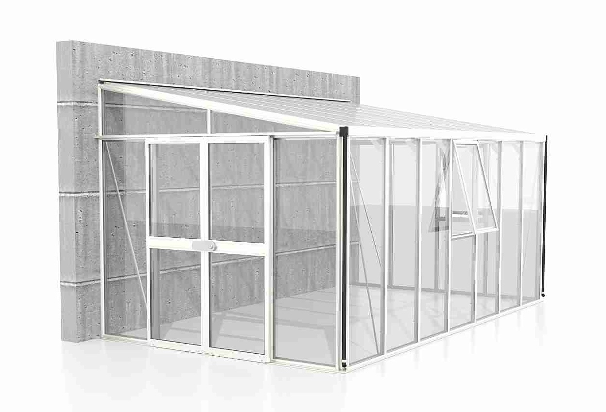 Skleník je určen k montáži ke zdi – zadní stěna není součástí konstrukce.