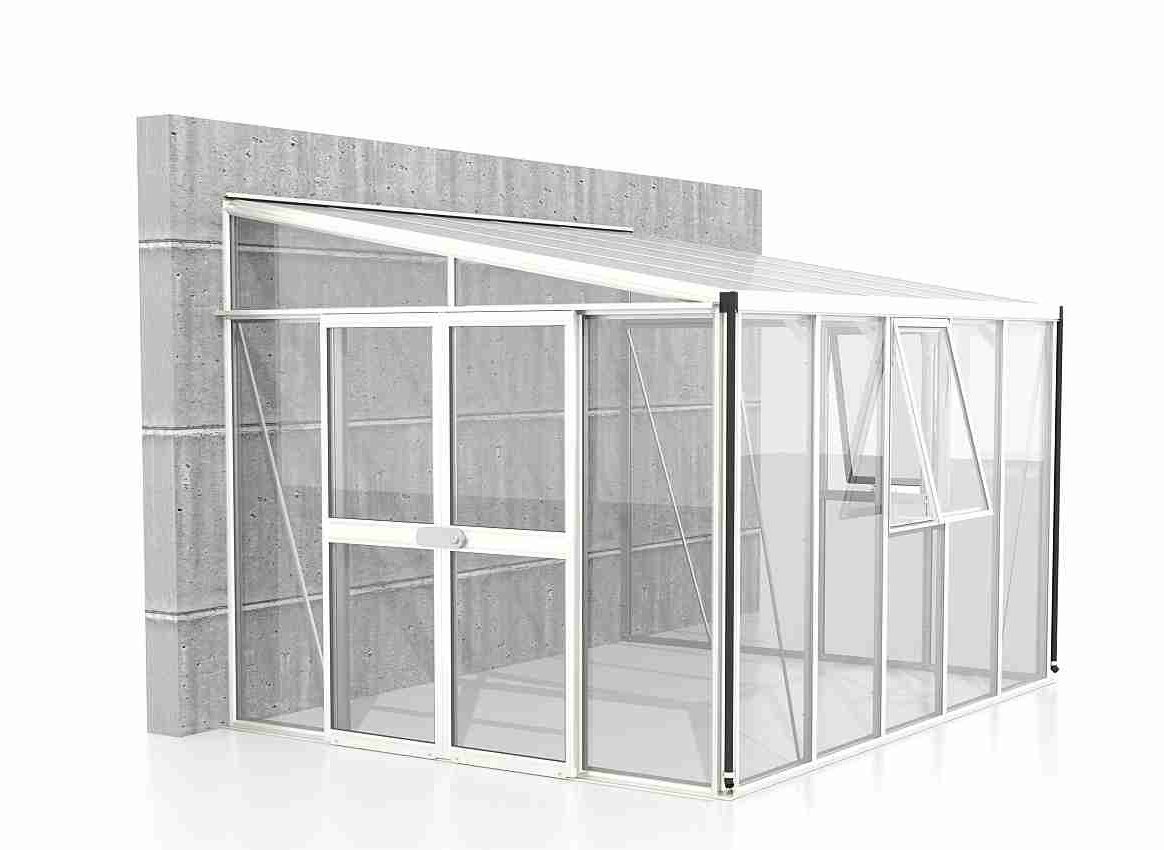 Skleník je určen k montáži ke zdi – zadní stěna není součástí konstrukce.