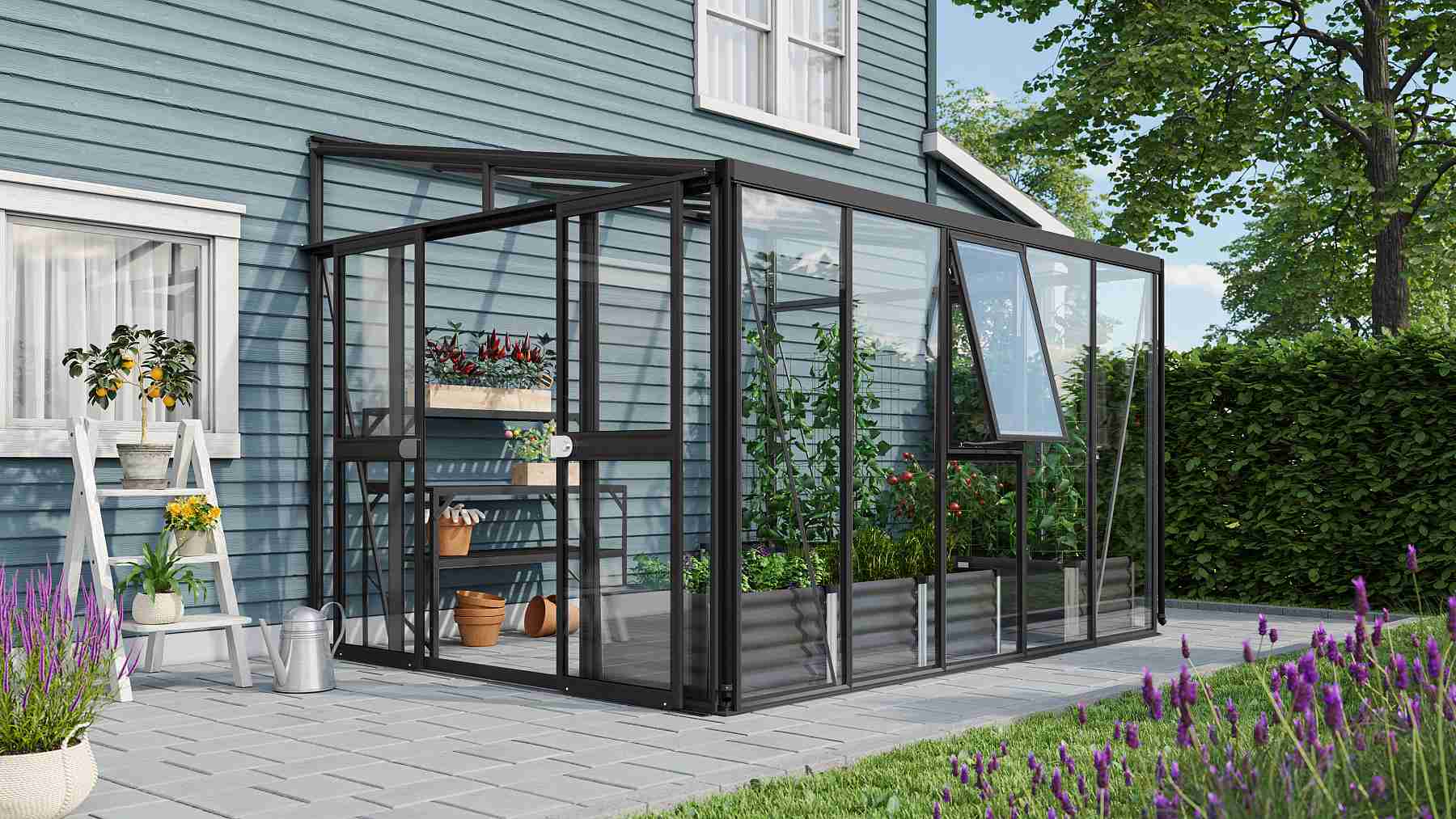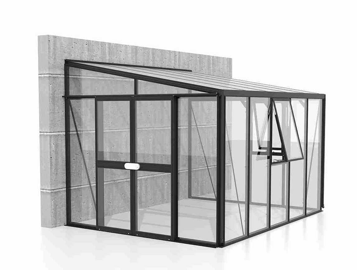 Skleník je určen k montáži ke zdi – zadní stěna není součástí konstrukce.