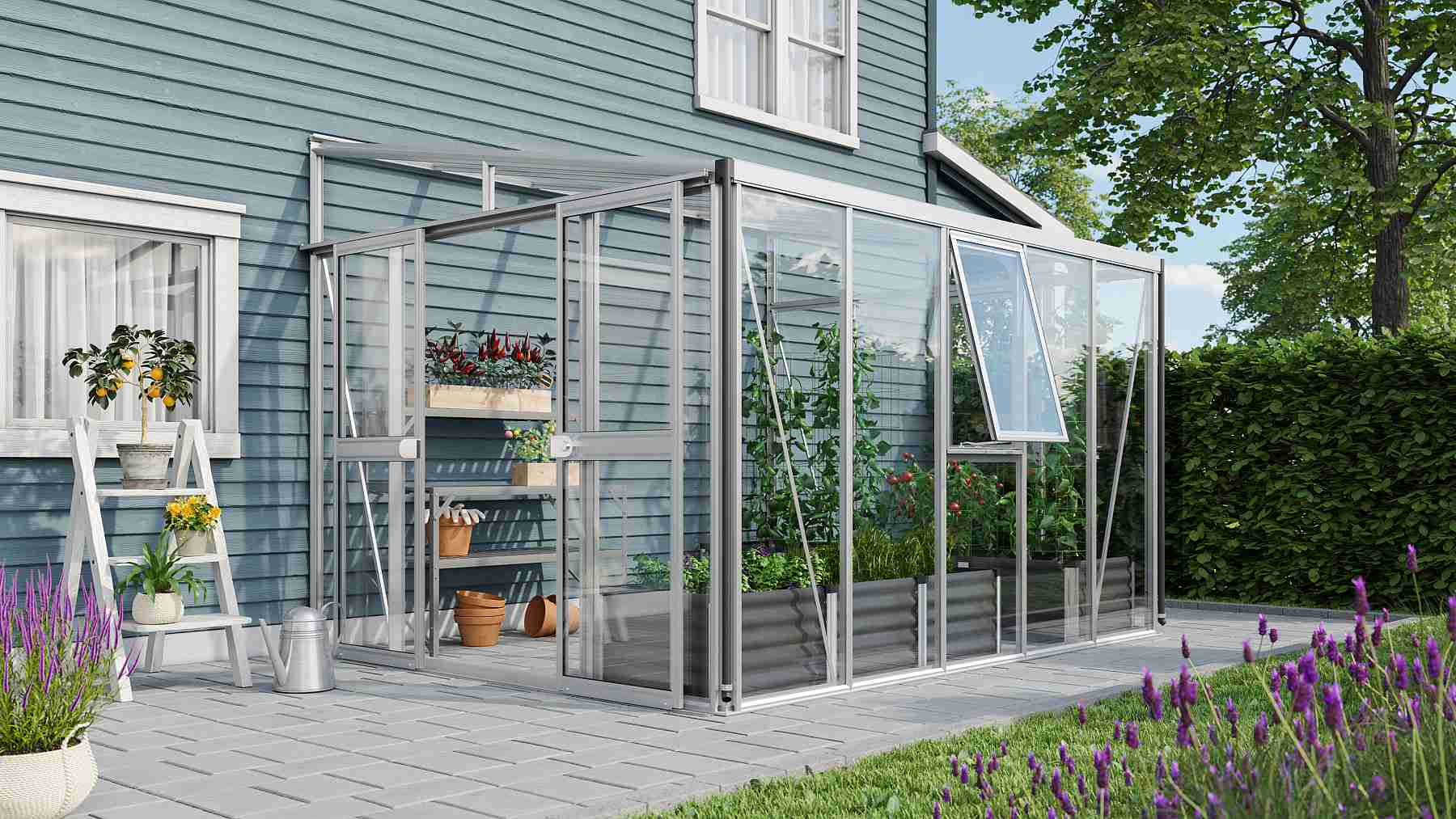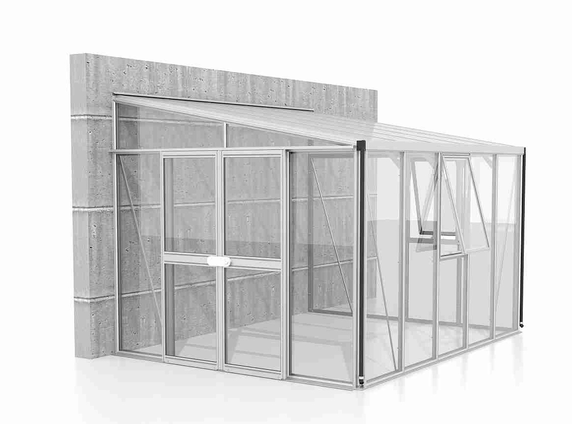 Skleník je určen k montáži ke zdi – zadní stěna není součástí konstrukce.