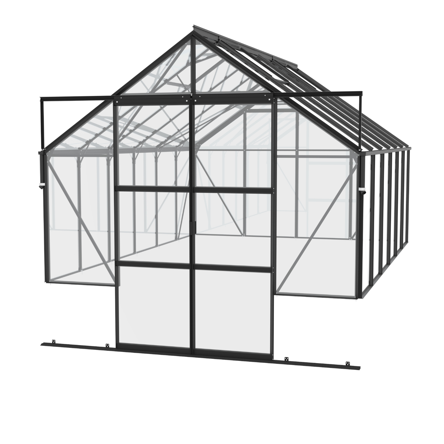 Obsahem balení jsou dvoukřídlé posuvné dveře (š x v otvoru = 1,22 x 1,94 m), AL profily, prosklení, 4x střešní ventilační okénko s manuálním otevíráním, veškerý spojovací materiál. Ke skleníku je možné dokoupit řadu nadstandardního příslušenství - poličky, regály, další větrací střešní i boční okénka, automatické otvírače k těmto okénkům, okapové sady, teploměry, vlhkoměry, zavlažovací zařízení, elektrické odporové vytápění půdy.