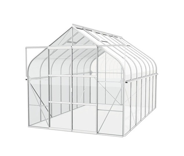 Obsahem balení jsou dvoukřídlé posuvné dveře (š x v otvoru = 1,22 x 2,00 m), AL profily, prosklení, pozinkovaná ocelová základna, 4x střešní ventilační okénko s manuálním otevíráním, veškerý spojovací materiál. Ke skleníku je možné dokoupit řadu nadstandardního příslušenství - poličky, regály, další větrací střešní i boční okénka, automatické otvírače k těmto okénkům, okapové sady, teploměry, vlhkoměry, zavlažovací zařízení, elektrické odporové vytápění půdy. Baleno v papírovém kartonu. Prosklení je zabalené v nevratné dřevěné bedně.