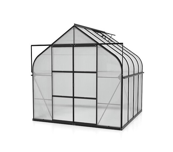 Obsahem balení jsou dvoukřídlé posuvné dveře (š x v otvoru = 1,22 x 2,00 m), AL profily, prosklení, pozinkovaná ocelová základna, 2x střešní ventilační okénko s manuálním otevíráním, veškerý spojovací materiál. Ke skleníku je možné dokoupit řadu nadstandardního příslušenství - poličky, regály, další větrací střešní i boční okénka, automatické otvírače k těmto okénkům, okapové sady, teploměry, vlhkoměry, zavlažovací zařízení, elektrické odporové vytápění půdy.