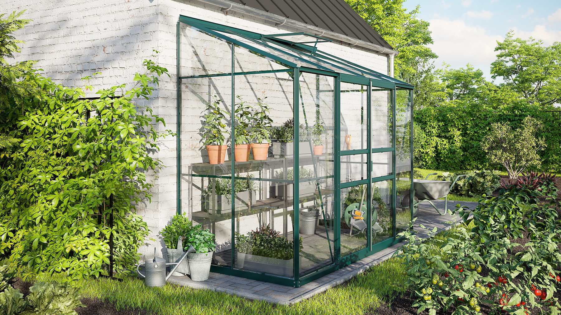 Skleník je určen k montáži ke zdi – zadní stěna není součástí konstrukce.