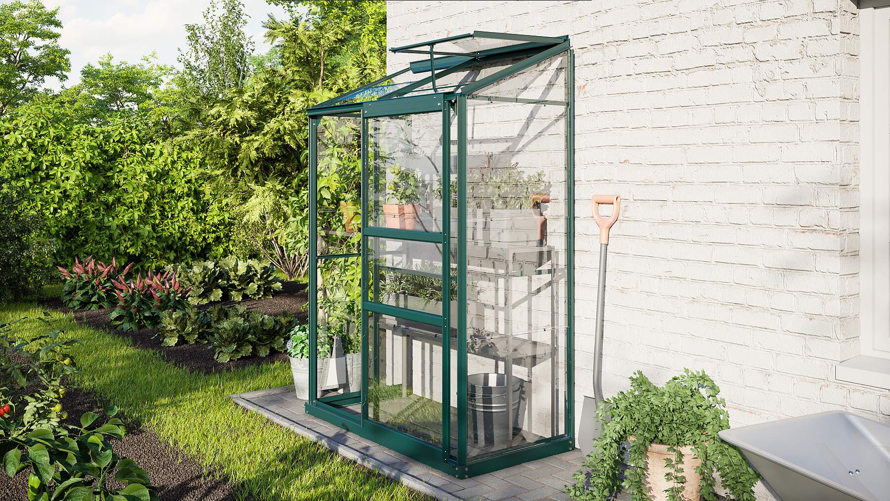 Skleník je určen k montáži ke zdi - zadní stěna není součástí konstrukce.