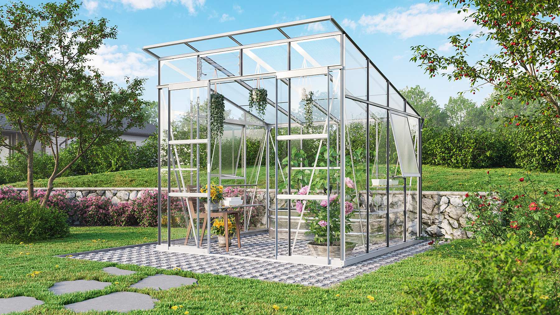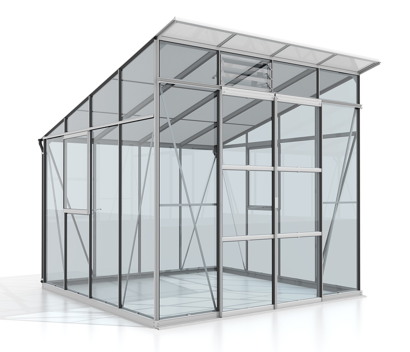 Skleníky řady PLAYA 7600 jsou zařazeny do kategorie PREMIUM - skleník je vyrobený značkovým výrobcem z Velké Británie. Skleník je vyrobený z eloxovaných hliníkových profilů, prosklení je z kaleného čirého skla síly 3 mm. Čiré sklo zajišťuje výbornou světelnou propustnost, takže do skleníku je krásně vidět ze všech stran a kdykoliv se můžete pokochat pohledem na pěstovanou zeleninu nebo květiny. Prosklení střechy je z tepelně-izolačních dvoustěnných komůrkových polykarbonátových desek síly 6 mm. Inovativní technologie zasklení využívající rámování desek mezi hliníkovými profily a polykarbonátovými lištami. Tato metoda poskytuje větší odolnost vůči větru ve srovnání s tradičními pružinovými sponami. Jedná se o velmi kvalitní řešení, které významně zvýšilo celkovou pevnost a stabilitu celého skleníku vůči větru a sněhovému zatížení.