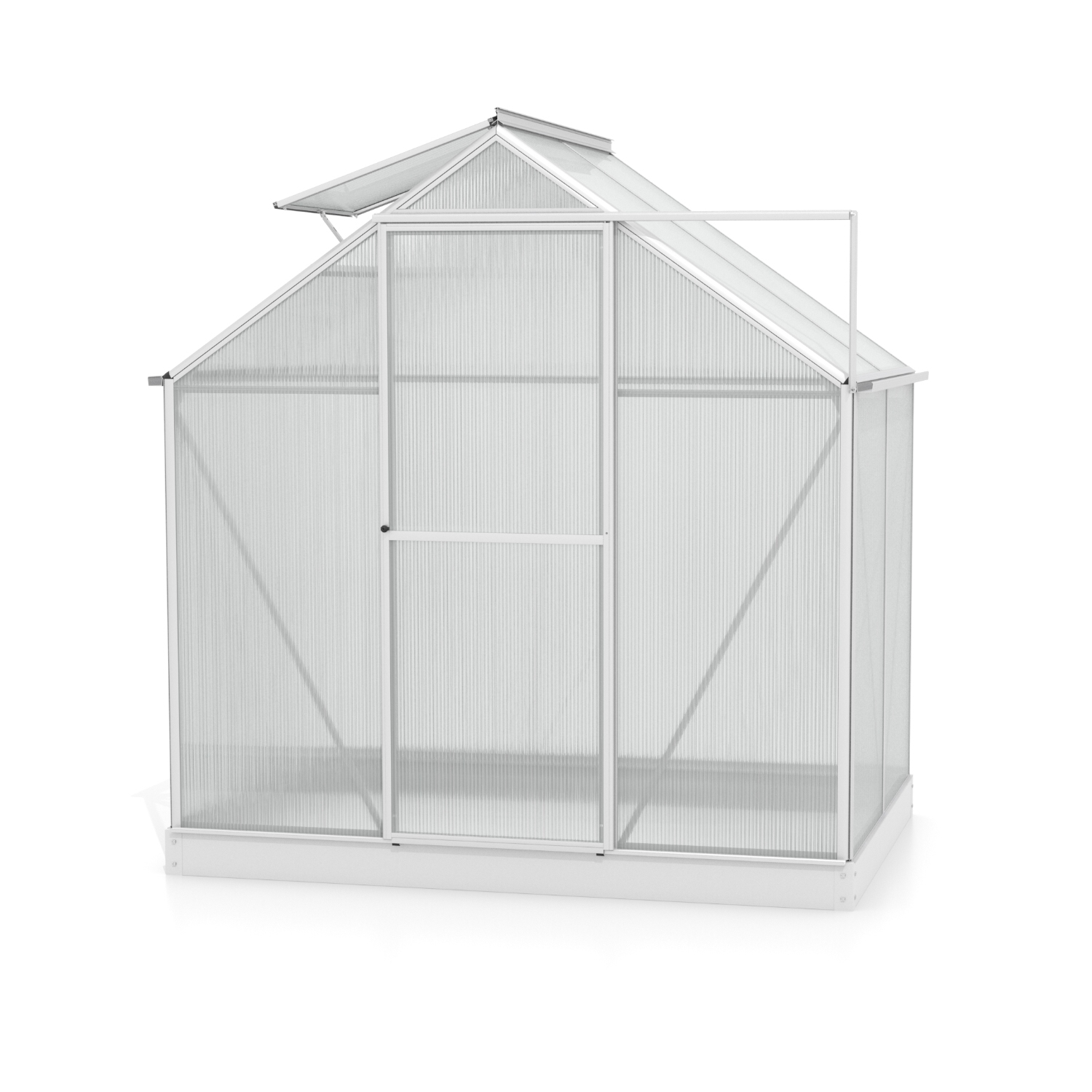 Obsahem balení jsou jednokřídlé dveře na pantech (š x v otvoru = 0,61 x 1,64 m), AL profily, prosklení, pozinkovaná ocelová základna, 1x střešní ventilační okénko s manuálním otevíráním, veškerý spojovací materiál. Ke skleníku je možné dokoupit řadu nadstandardního příslušenství - poličky, regály, další větrací střešní i boční okénka, automatické otvírače k těmto okénkům, okapové sady, teploměry, vlhkoměry, zavlažovací zařízení, elektrické odporové vytápění půdy.